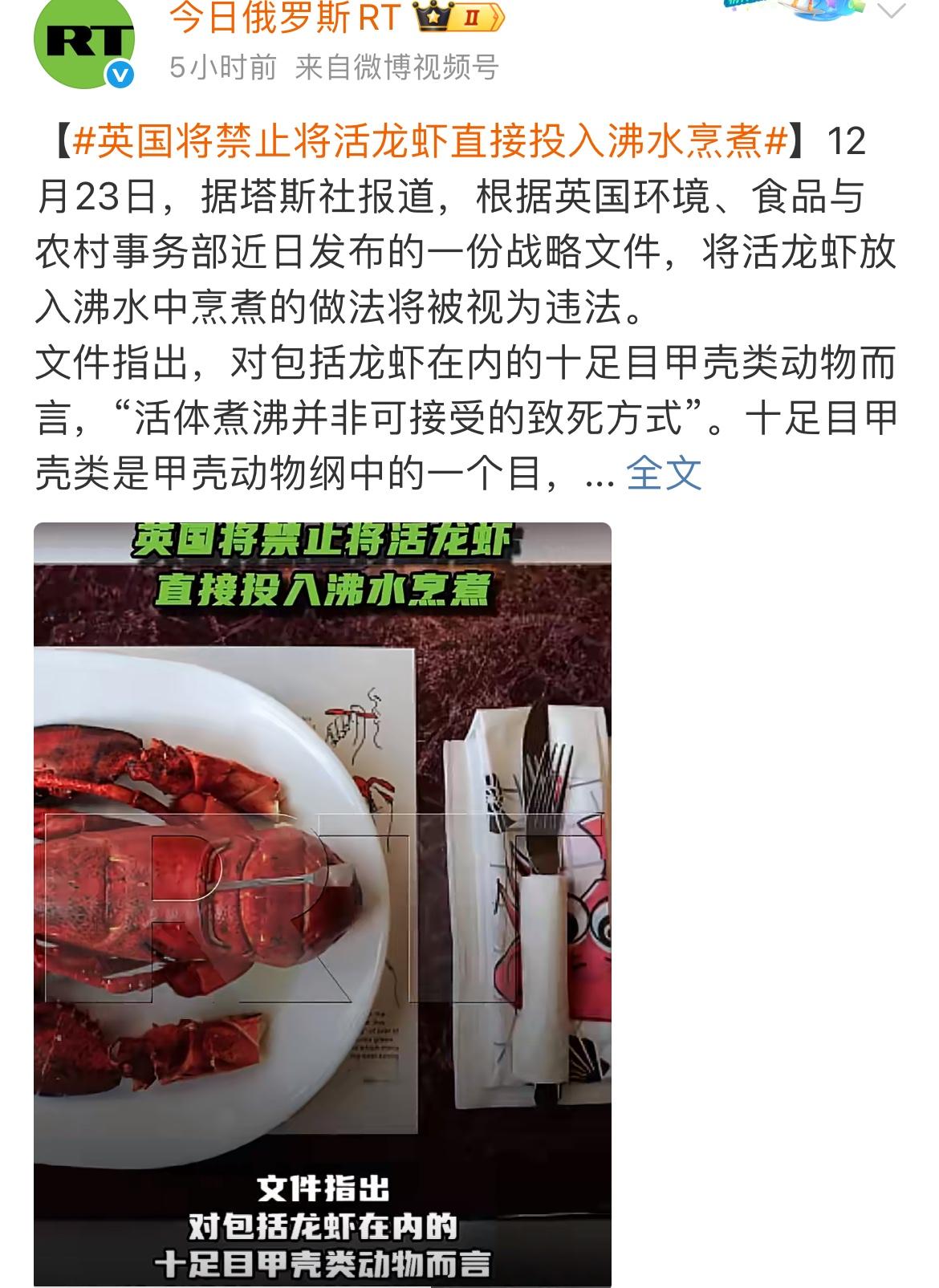 可把英国佬善良坏了,龙虾知道了都得哭出声来。龙虾被煮会很痛苦,阿富汗伊拉克加沙人民被轰炸难道就不会痛苦吗?