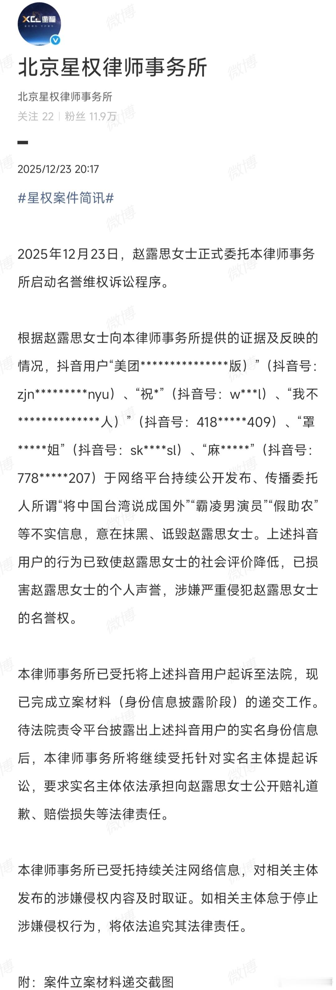 赵露思方更新告黑流程了!这次告了很多抖那边恶意zy的,必须狠狠告!