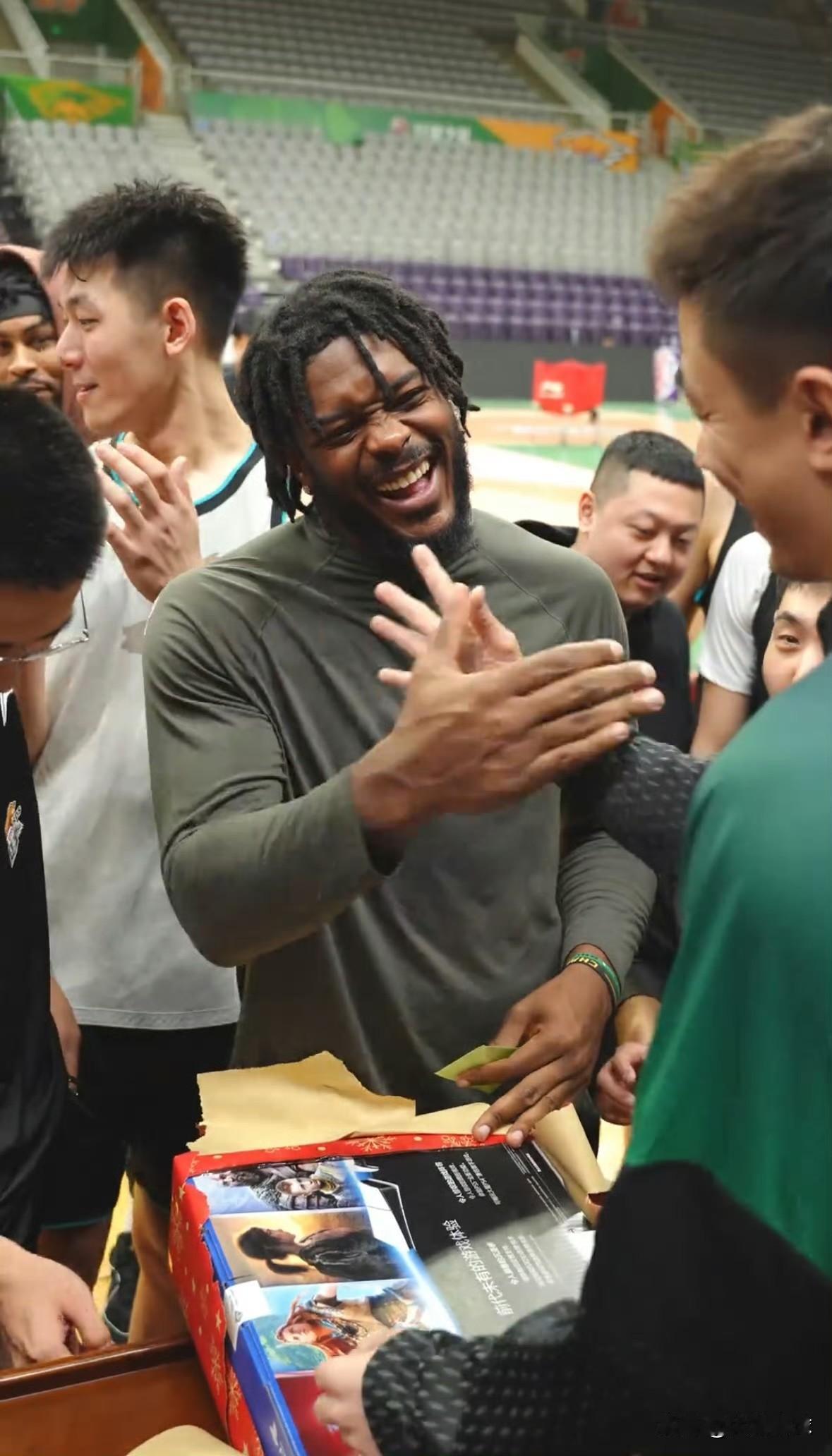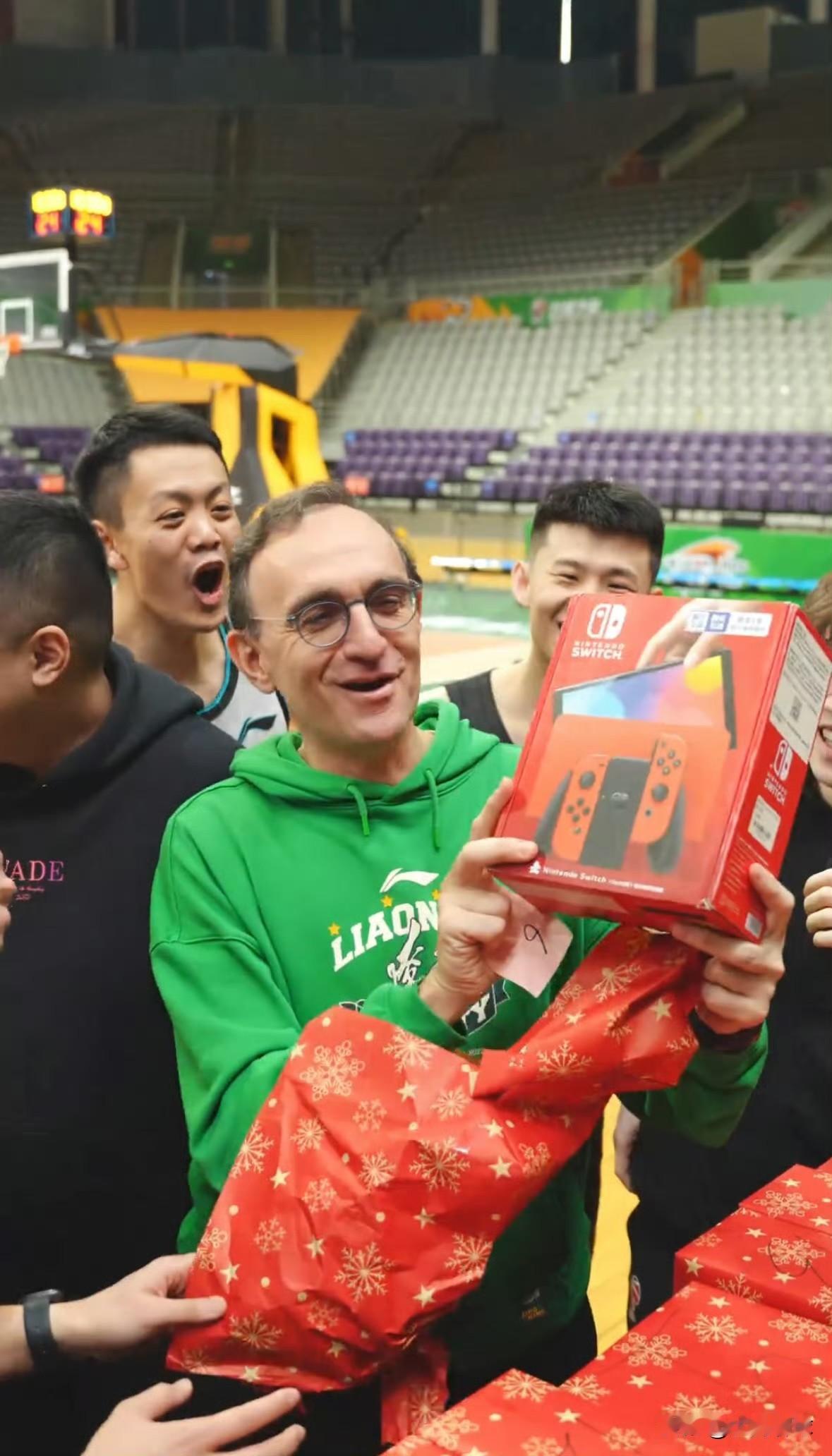 太有心了!赵继伟为全队准备圣诞节+元旦礼物🎁,并以前祝大家新年快乐!礼物以盲盒的形式抽取,现场球员、教练员其乐融融,主教练乌戈抽中Switch,二哥抽中剃须刀,奥利弗抽中PS5,小龙抽中iPhone