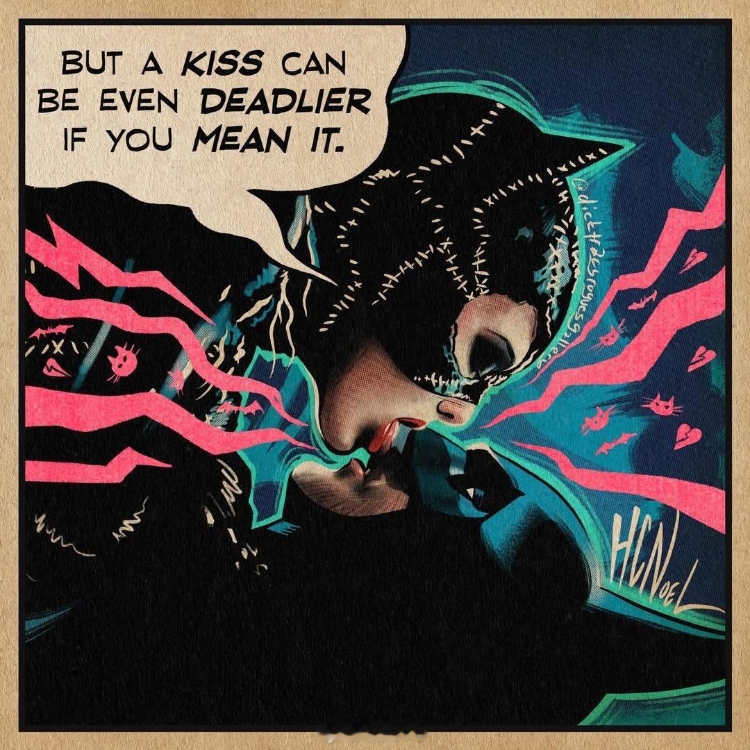 MichellePfeiffer周边 Fan Art,“如果你吃下槲寄生,它可能会致命。”“但如果你认真,一个吻,会更致命。”💋插画师Howie Noel绘制的复古风【蝙蝠侠归来】“猫女”米歇尔·菲佛米歇尔·菲佛 🐈⬛和“蝙蝠侠”迈克尔·基顿🦇的经典台词,槲寄生下的一吻~跨年电影愿 每年圣诞节🎄,都要应节重温。