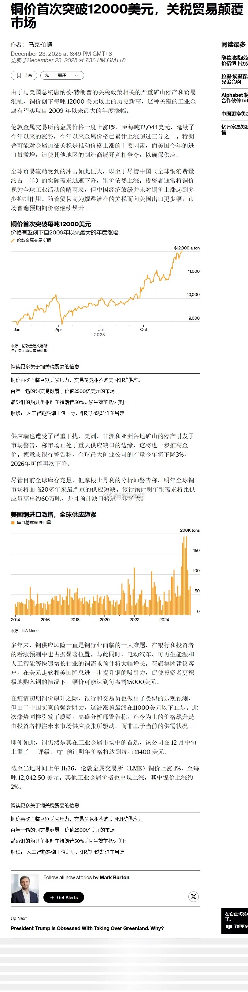 铜价首次突破 12000 美元,关税贸易颠覆市场