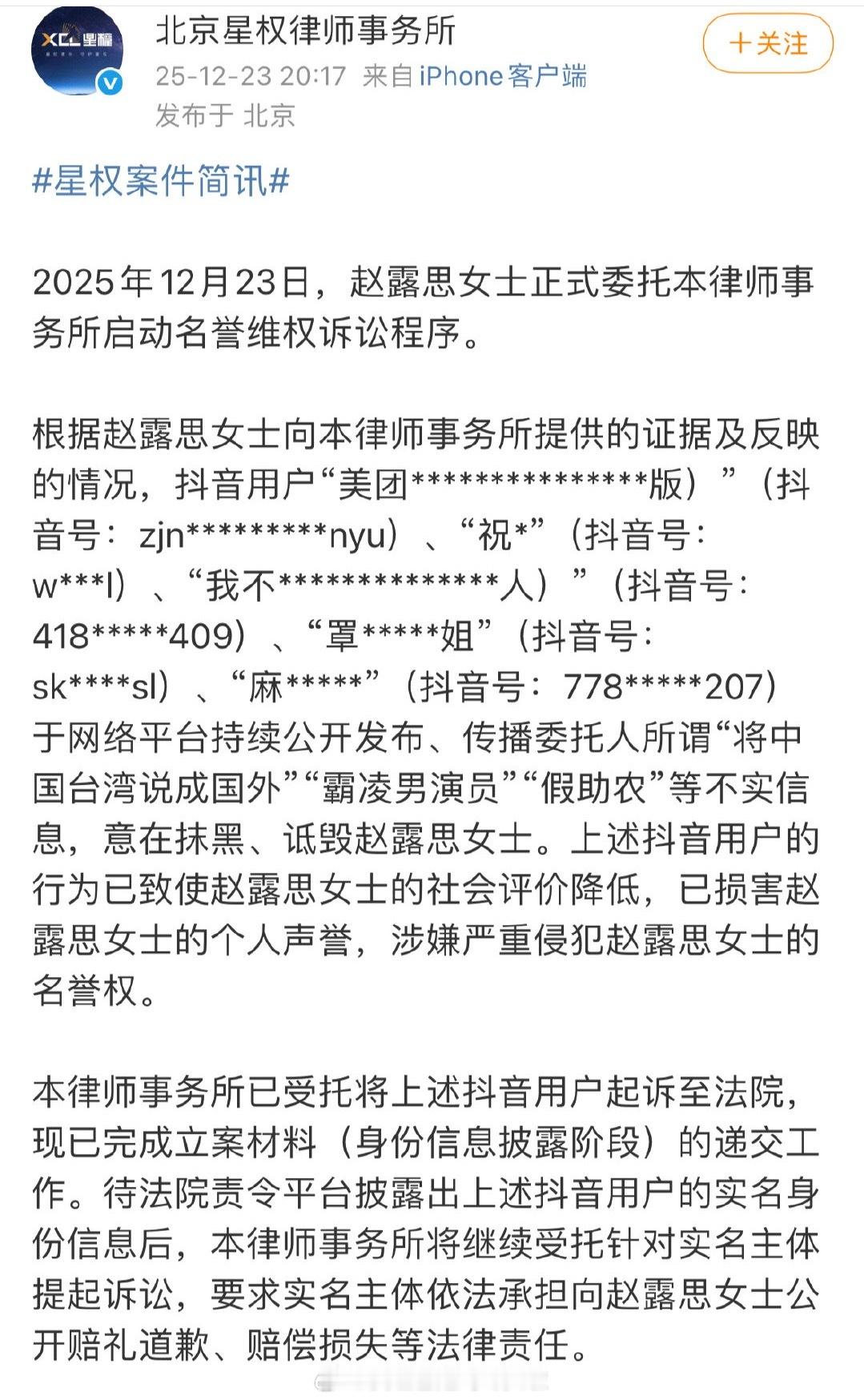 赵露思告嘿,这次是🎼上造谣她霸凌男演员、假助农的号