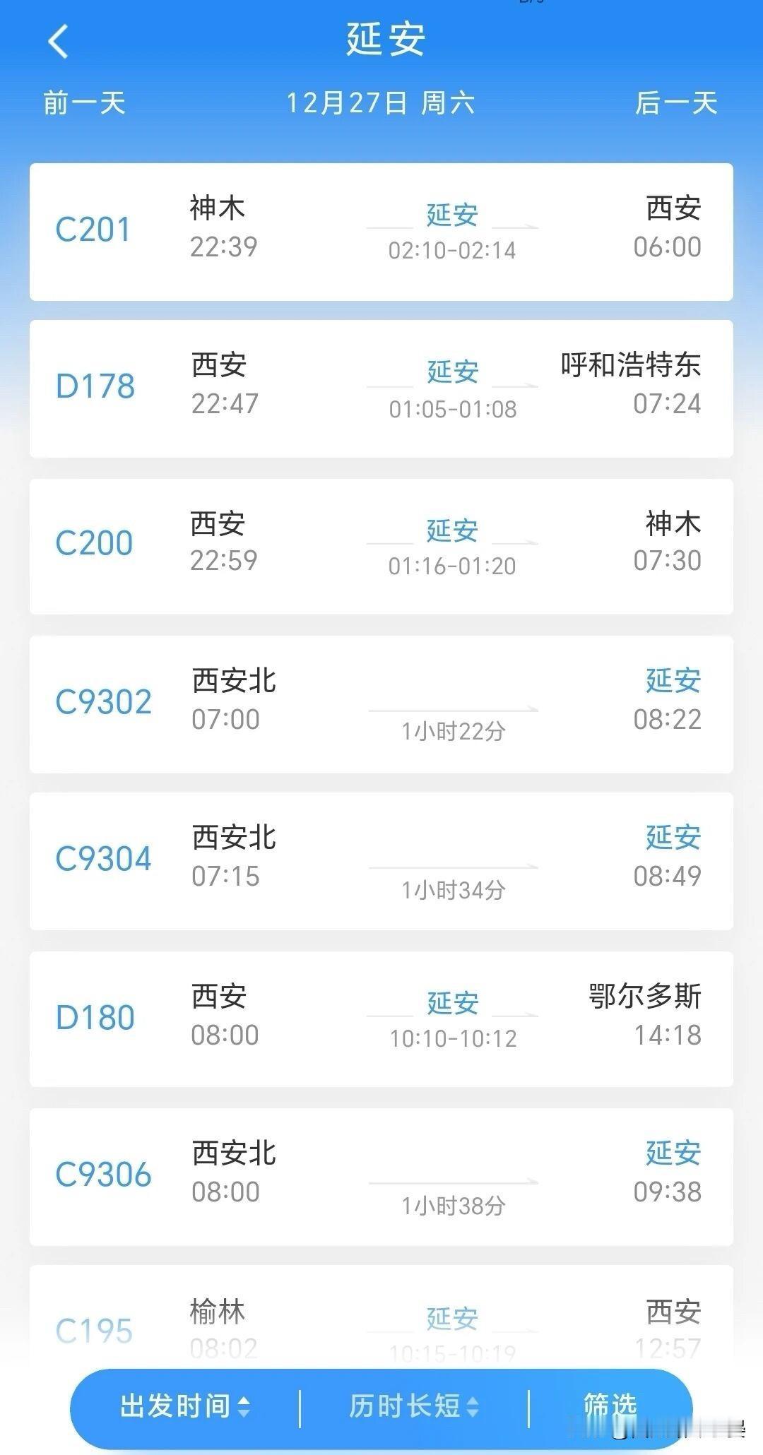 西延高铁,车次已上线! 开通初期只能开通关内车次,未并入全国铁路网,算断头路。跨局车次开不了,所以只有CD车次。等一月份五号左右的调图就有了
