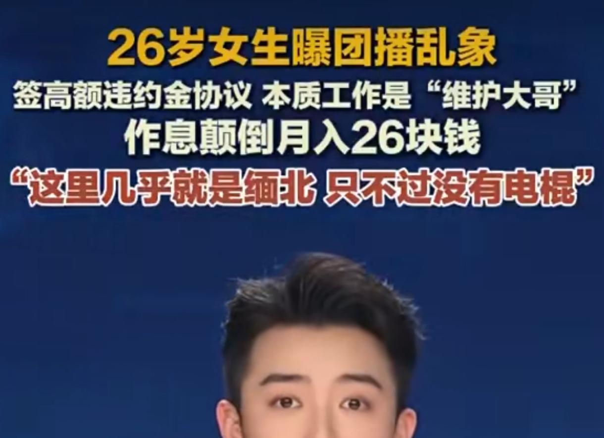 26岁女生团播月入26元!作息颠倒还被威胁,这坑千万别踩 26岁女生小羽的团播经历,简直把人看傻了!干了一个月团播,天天作息颠倒熬大夜,最后到手就26块钱,舞台服装还得自己掏钱,这哪是赚钱,纯纯是遭罪。 更离谱的是领工资时还被公司威胁,说不签协议就拿不到钱,这明摆着就是欺负人。小羽直言,那些所谓的“大哥”根本不是来消费的,全是抱着歪心思来的,这话真是戳破了团播行业的遮羞布。 还有更揪心的,不少16、17岁的男孩女孩,被“高薪”“轻松”的幌子骗进来,没经过监护人同意就签了所谓的“合作协议”,被迫在镜头前跟形形色色的人周旋,小小年纪就掉进了火坑。 这些孩子以为团播是捷径,能靠直播轻松赚大钱,殊不知背后全是套路。公司不跟你签正规劳动合同,只签合作协议,出了事根本没地方说理,维权都找不到门路。 小羽干了两个月彻底认清现实,果断辞职回了老本行搞土木工程,现在再刷到团播直播间,心里只剩平静,再也没有当初的羡慕了,毕竟踏实干活才靠谱。 团播行业的乱象真该好好整治了,打着高薪旗号坑骗年轻人,尤其是未成年,简直没底线。别听那些天花乱坠的宣传,天上不会掉馅饼,只会掉陷阱。 今天就给大伙儿提三个醒,别被团播套路坑了。第一,遇到“无底薪高提成”“轻松月入过万”的招聘,直接扭头走,全是骗人的幌子。 第二,入职前看清楚合同性质,不是正规劳动合同的坚决不签,尤其是未成年人,一定要让监护人在场,别稀里糊涂签了霸王条款。 第三,要是真掉进坑里被威胁,别慌也别忍气吞声,保留好聊天记录、工资条等证据,赶紧找劳动监察部门投诉,必要时寻求法律援助。 踏踏实实做事,安安分分赚钱,才是普通人的正道。那些看似光鲜的捷径,背后全是你想不到的坑,别拿青春赌明天。 捷径从来都是最远的路,踏实才是成年人最稳的底气! 希望那些还在被团播诱惑的年轻人能醒醒,别让大好年华,毁在不靠谱的幻想里。