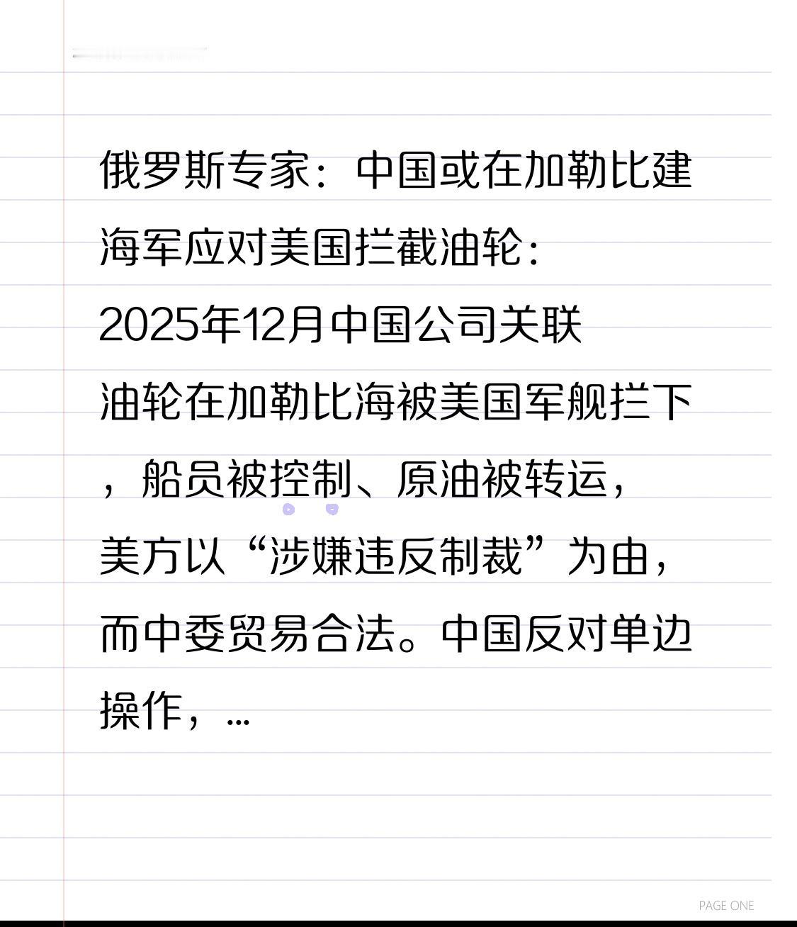 俄罗斯专家:中国或在加勒比建海军应对美国拦截油轮:2025年12月中国公司关联油轮在加勒比海被美国军舰拦下,船员被控制、原油被转运,美方以“涉嫌违反制裁”为由,而中委贸易合法。中国反对单边操作,准备反制。俄罗斯专家称若谈判未果,中国或在加勒比建强有力海军存在,保护海外能源通道和利益。