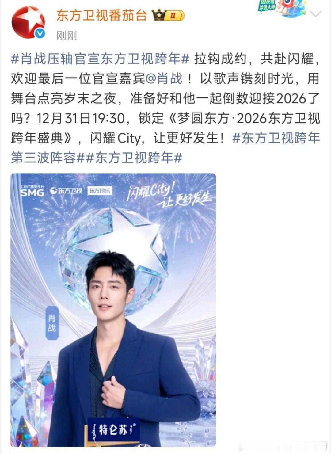 肖战压轴官宣东方卫视跨年,巨星降临,炸裂跨年舞台,期待住了!! 肖战压轴官宣东方卫视跨年