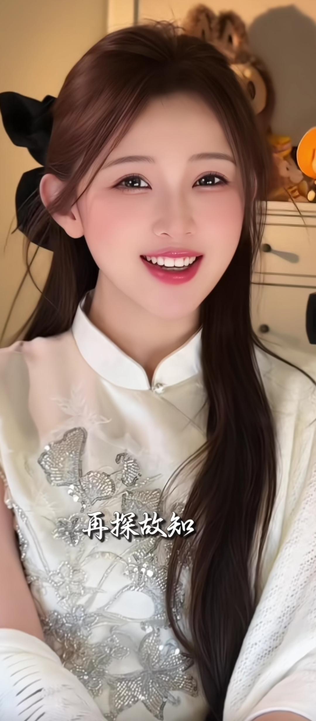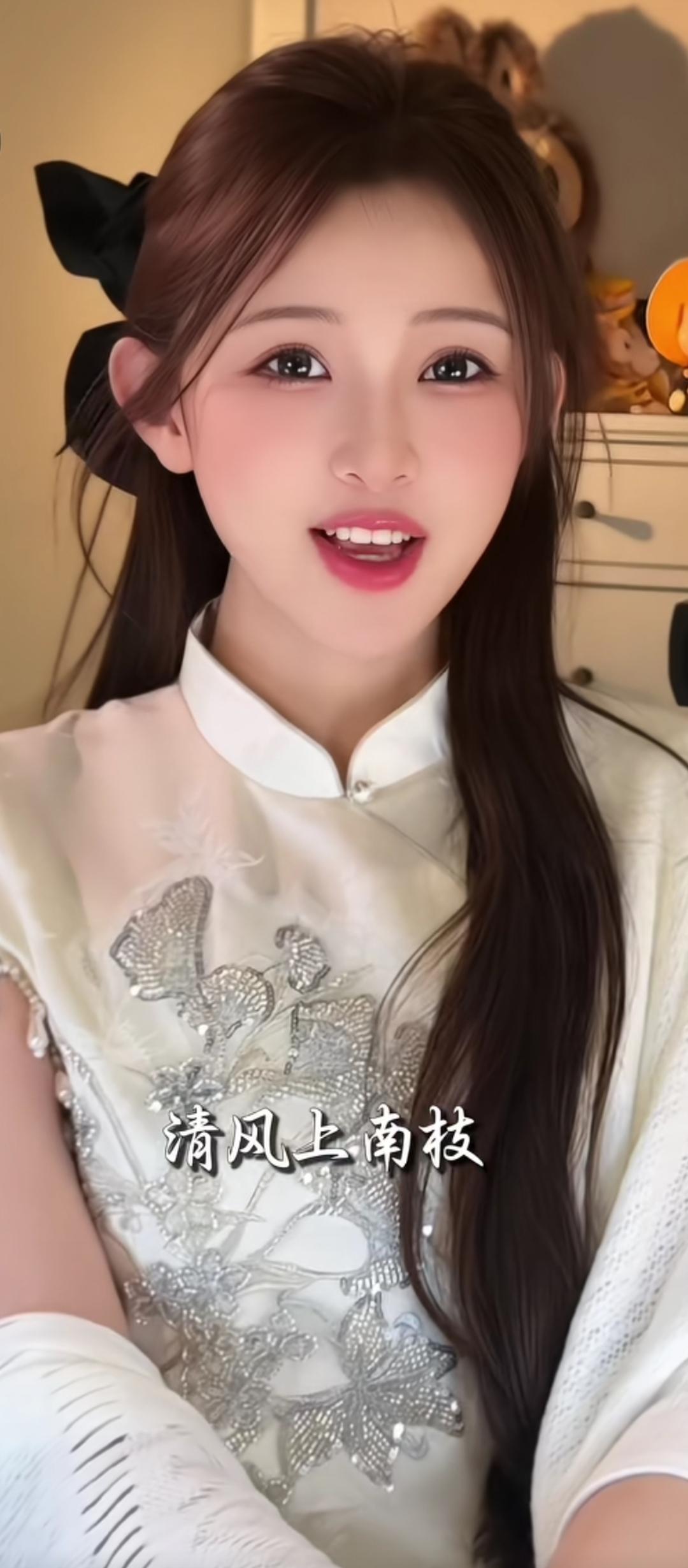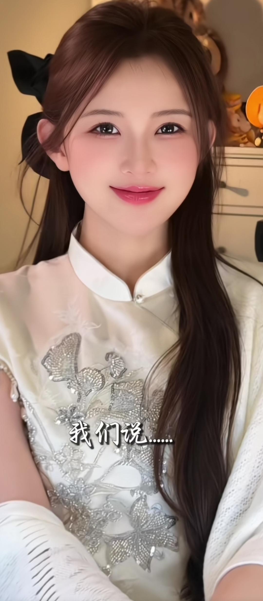 优雅黑发,白衣动人,镜中倩影,岁月静好。