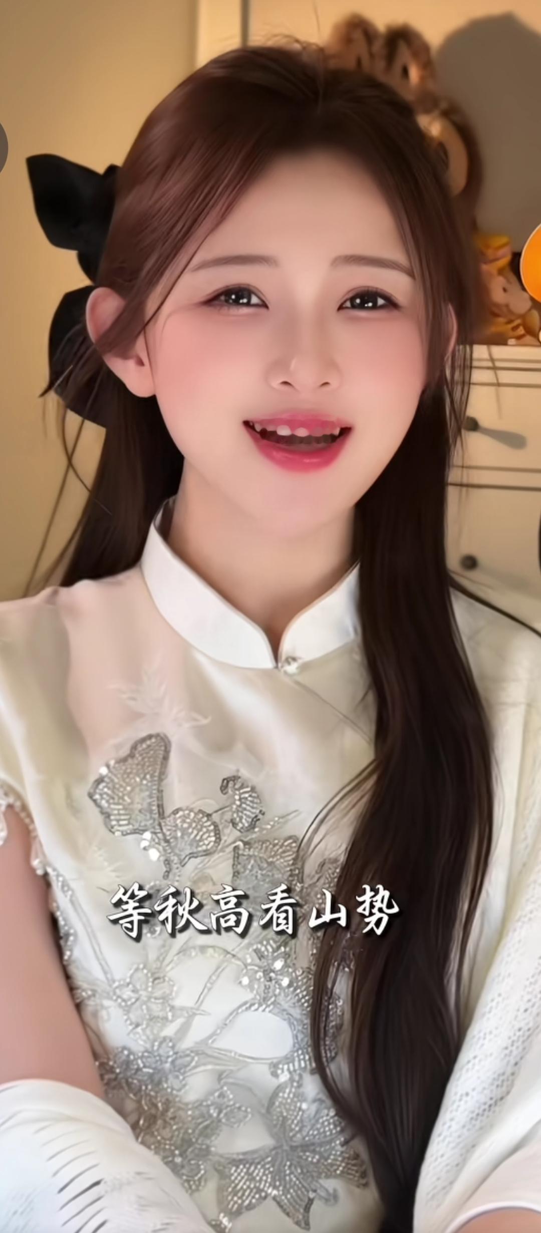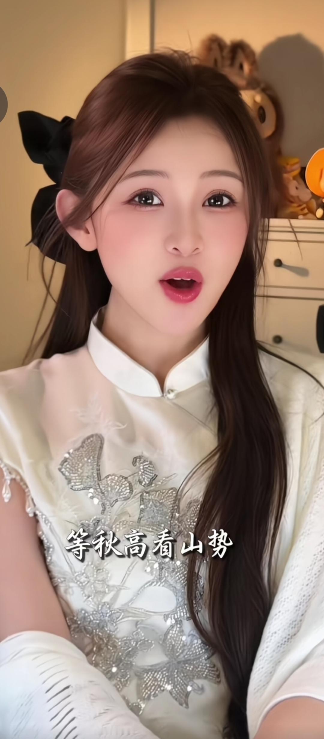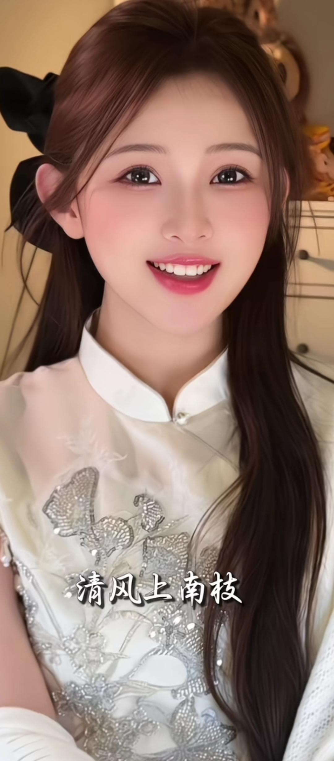 优雅黑发,白衣动人,镜中倩影,岁月静好。