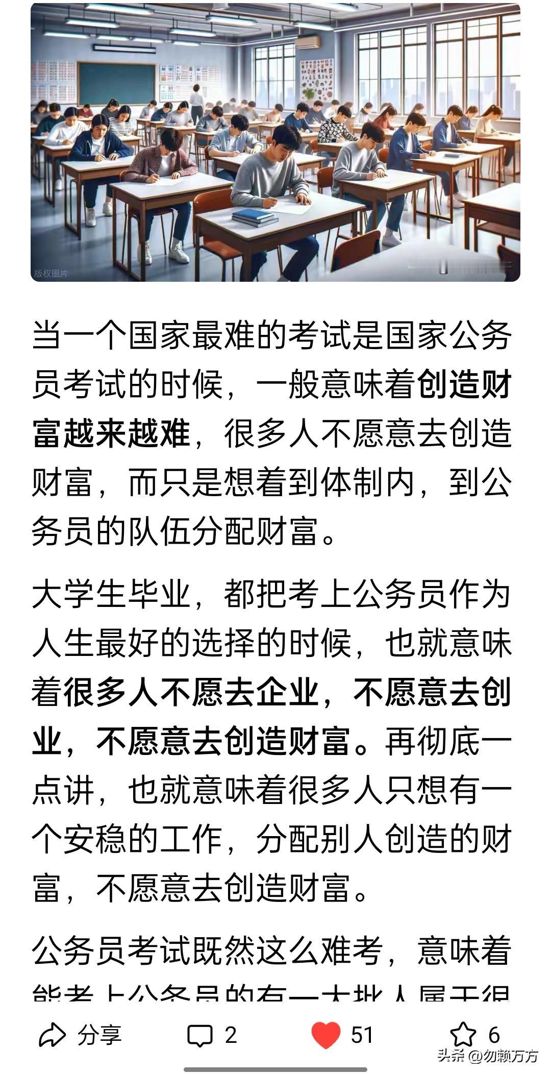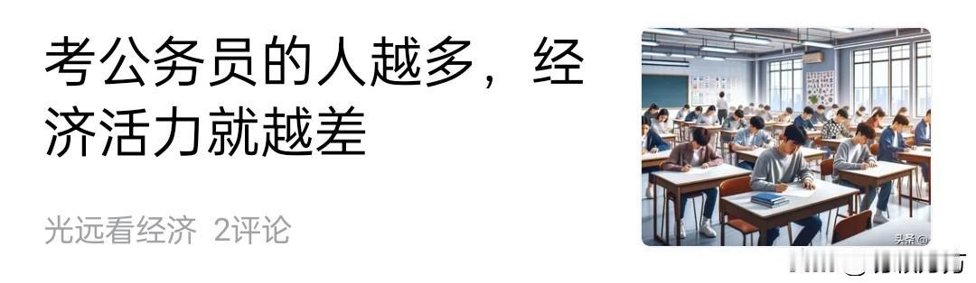 知名经济学者马光远发文说“考公的人越多,经济活力就越差”。经济活力差,一方面它是