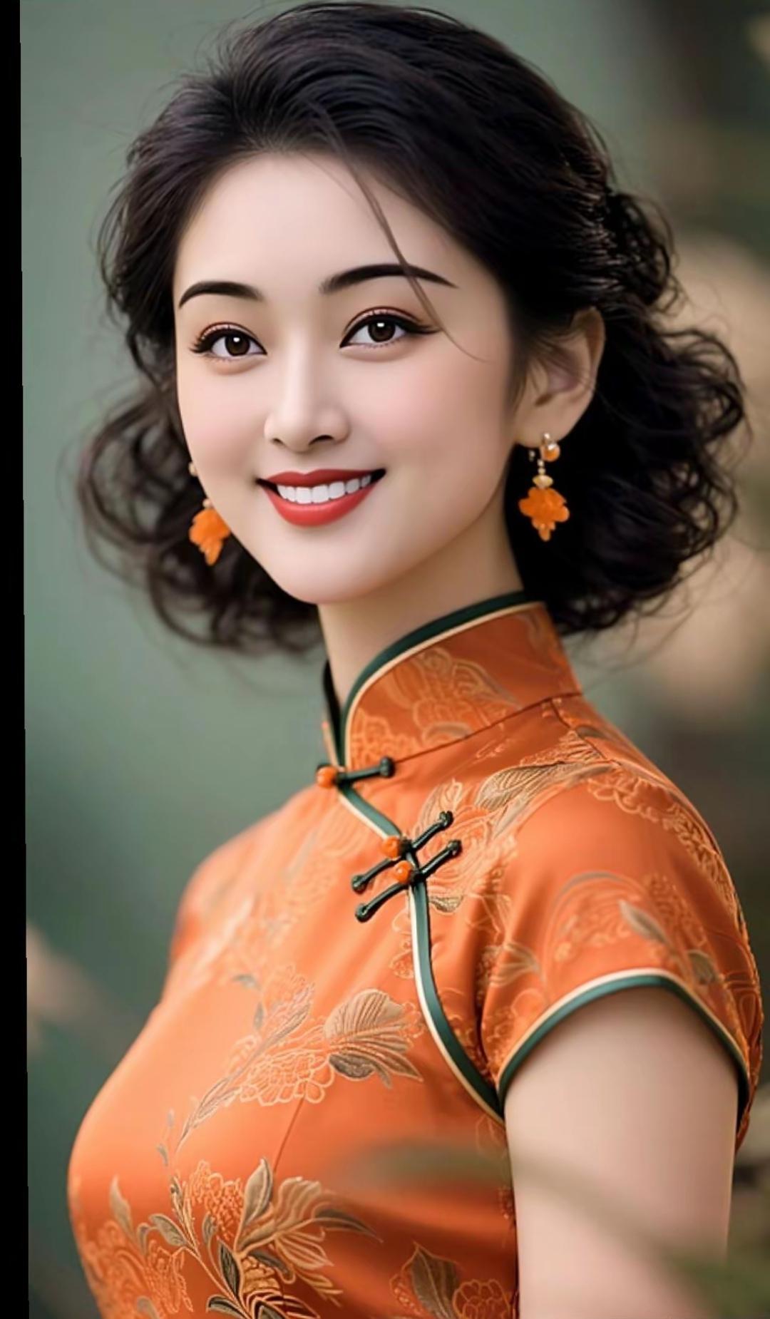 优雅东方美人,橙衣花影间绽放!高清美女 优雅美图分享