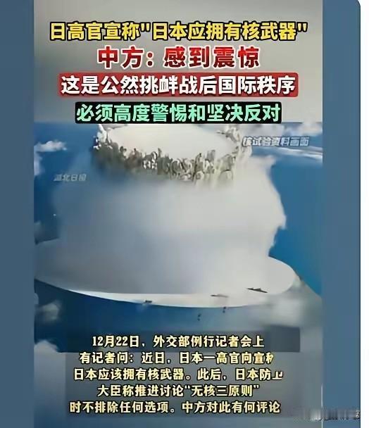 老胡这次算是把话说到骨子里了。 建议一旦日本动了核武的歪心思,咱们就得给“不使用核武器”这个铁律开个口子。 这事儿听着惊悚,可你细琢磨,这才是成年人该有的博弈思维。 那个岛国,历史上赌性极重,真要让他们撕毁“无核三原则”,手里握着大杀器,咱们这枕头边还能睡得安稳? 有人嫌老胡说得还不够狠,主张直接对外科手术式打击不设限,甚至要搞“胎死腹中”的先发制人,我是深以为然。 面对这种有着极深历史积怨且战略空间狭窄的对手,任何一丝犹豫都是对子孙后代的犯罪。 你手里的剑够利,而且让人相信你敢拔出来,对方才会坐下来跟你讲“和平”。 对于某些邻居,只有雷霆手段,才是最大的菩萨心肠。 别觉得这是危言耸听,看看最近的动向就知道,这岛国的核野心早就藏不住了。就在上个月,首相官邸负责安保的官员公然喊出“日本应该拥有核武器”,这话一出来,连日本国内都炸了锅——曾遭原子弹轰炸的长崎受害者团体气得发抖,直言这是在往他们的伤口上撒盐 。更讽刺的是,内阁官房长官嘴上重申“无核三原则”,却对涉事官员不处理、不追责,这种遮遮掩掩的态度,本身就是一种默许。 他们的小动作远不止这些。表面上喊着和平,暗地里早把核家底攒得盆满钵满。国际原子能机构去年的报告显示,日本囤积的分离钚已经达到47吨,按专家测算,这些材料足够造6000枚核弹头。6000枚啊!这哪里是民用核电的需求,分明是在为核武装铺路。更让人警惕的是,右翼政客还在不断试探红线,先是提出“无核2.5原则”允许美军核舰艇停靠,后来又鼓吹“美日核共享”,一步步瓦解着战后形成的核禁忌 。 历史早就告诉我们,这个国家的赌性刻在骨子里。二战时就偷偷搞过“仁计划”研发原子弹,若非美军空袭摧毁设施,后果不堪设想。如今战略空间狭窄,又总想着突破束缚,一旦真的握住核按钮,谁能保证他们不会重蹈覆辙?想想看,一个连靖国神社都敢屡次参拜、连战争罪行都不愿承认的国家,手握核武器后,东亚的和平格局恐怕会瞬间崩塌。 有人说“应该再给一次机会”,这种想法太天真了。机会不是没有给过,是他们自己一次次把和平的大门往回推。更关键的是,核扩散的后果谁也承担不起。一旦日本拥核,韩国民众早就高涨的拥核呼声必然会变成实际行动,朝鲜也会加速核武库升级,到时候东北亚就会陷入四国核对峙的险境。这还只是开始,全球核不扩散体系会彻底失效,更多国家会跟风研发核武,人类将重新回到相互毁灭的边缘。 中美俄这三个立场迥异的大国,在反对日本拥核这件事上罕见地达成一致,不是没有原因的。谁都清楚,让这个有侵略历史的国家掌握核武,就等于在自己家门口埋了颗定时炸弹。对我们来说,这不仅是历史伤痛的警示,更是现实安全的底线——中日隔海相望,一旦核危机爆发,我们的沿海地区、民众安全都将直接面临威胁。 所以老胡的建议,本质上是戳破了“绥靖换和平”的幻想。对付这种步步紧逼、毫无敬畏之心的对手,模糊的表态只会被当成软弱。只有把底线亮出来,把“敢出手”的信号传出去,才能让他们不敢越雷池半步。所谓的“开口子”,不是好战,而是以战止战;所谓的“雷霆手段”,不是残忍,而是为了守护子孙后代的安宁。 核威慑的核心从不是“拥有”,而是“让对方相信你敢使用”。日本现在就是在试探各方的底线,你退一步,他就敢进一步。与其等到核设施建成、木已成舟时再后悔,不如现在就亮出利剑,让他们清楚知道:核门槛,碰不得。这不是穷兵黩武,而是对和平最负责任的守护。日本核武争议 日本核武器 日本核武潜力 核武器使用政策 核武问题 核武实力 核武使用