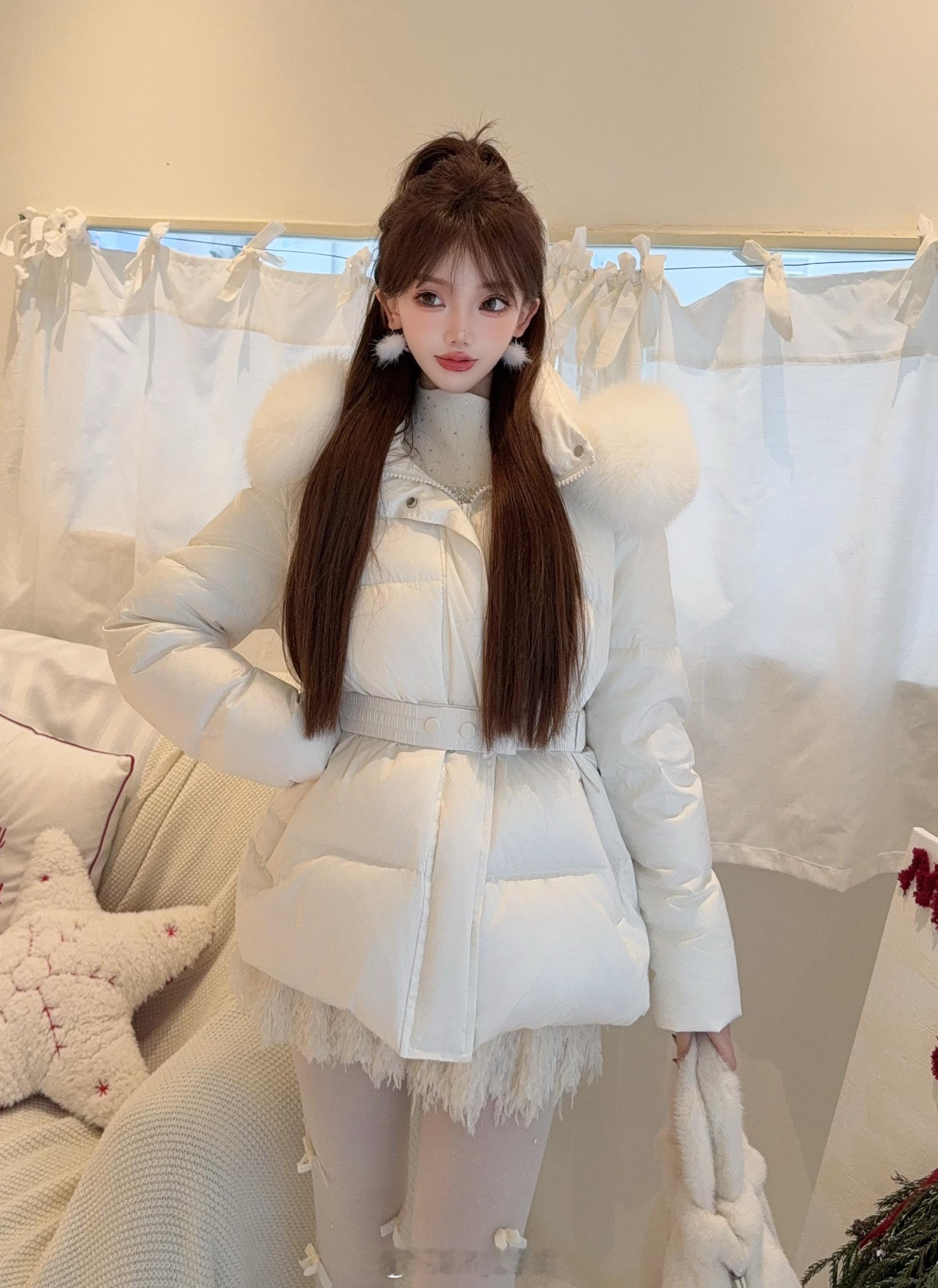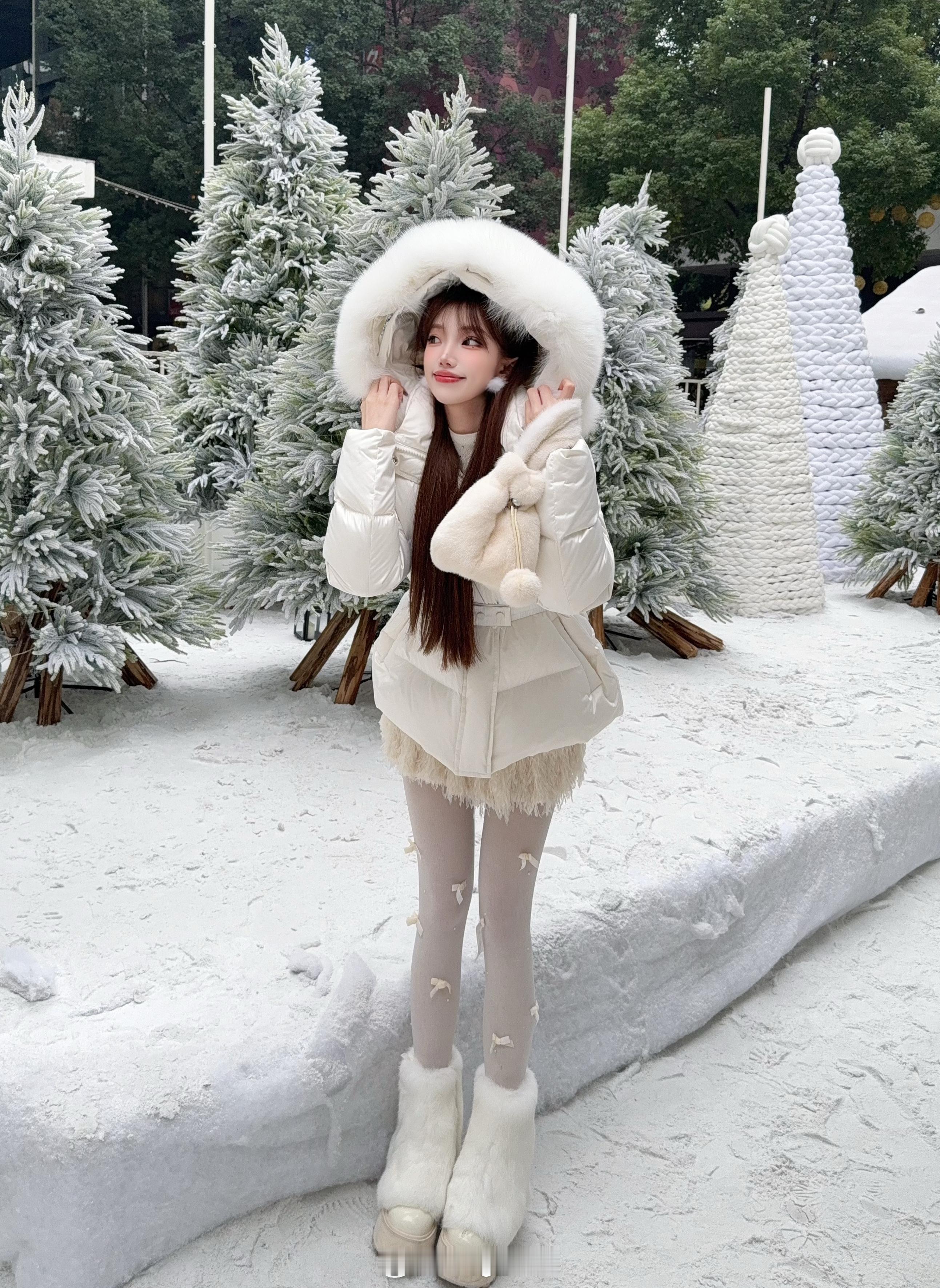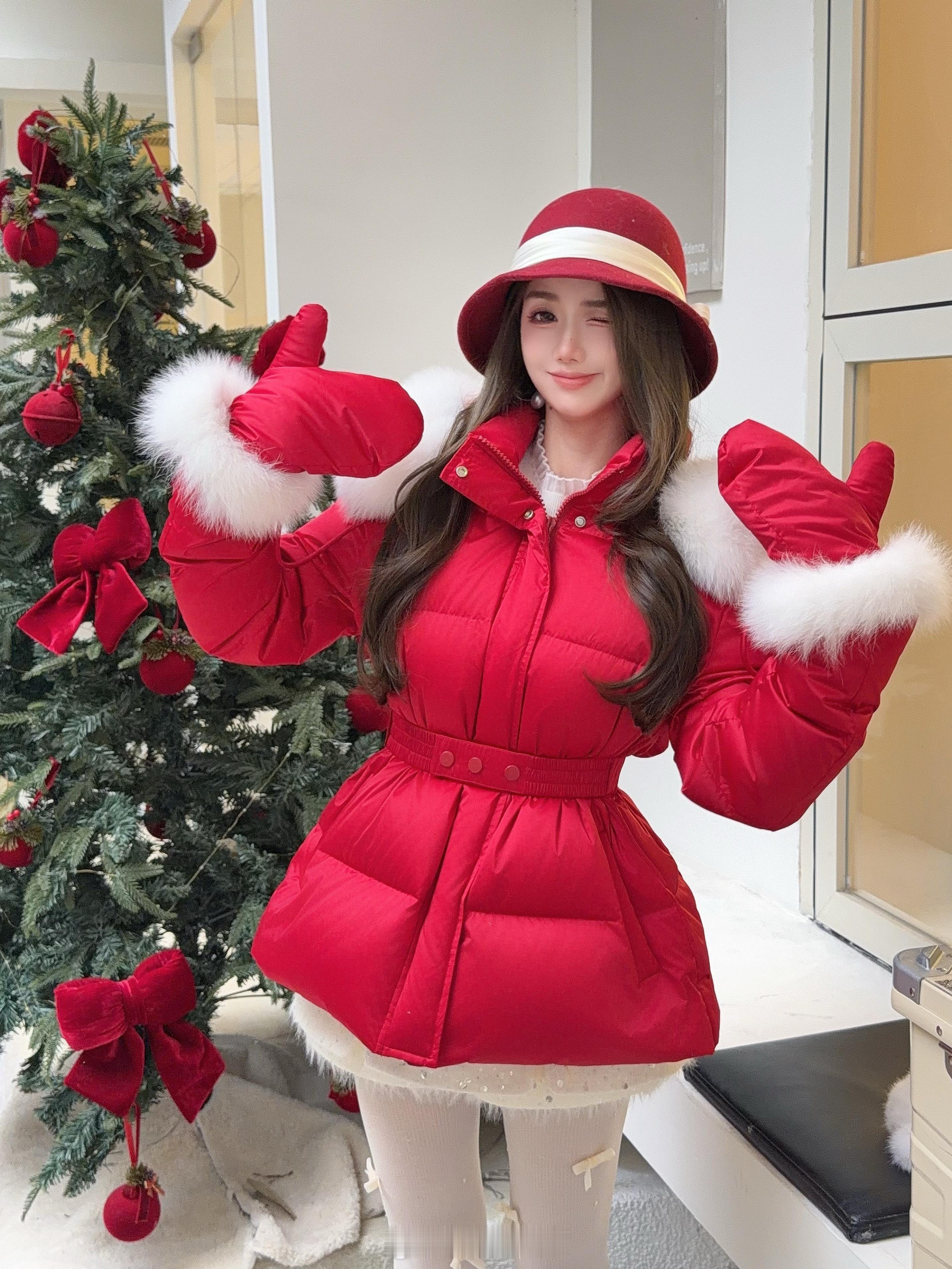 正在开这款↓草莓布丁羽绒外套 and 羽绒马甲都配有腰带哦,显腰身显腿长两种穿法