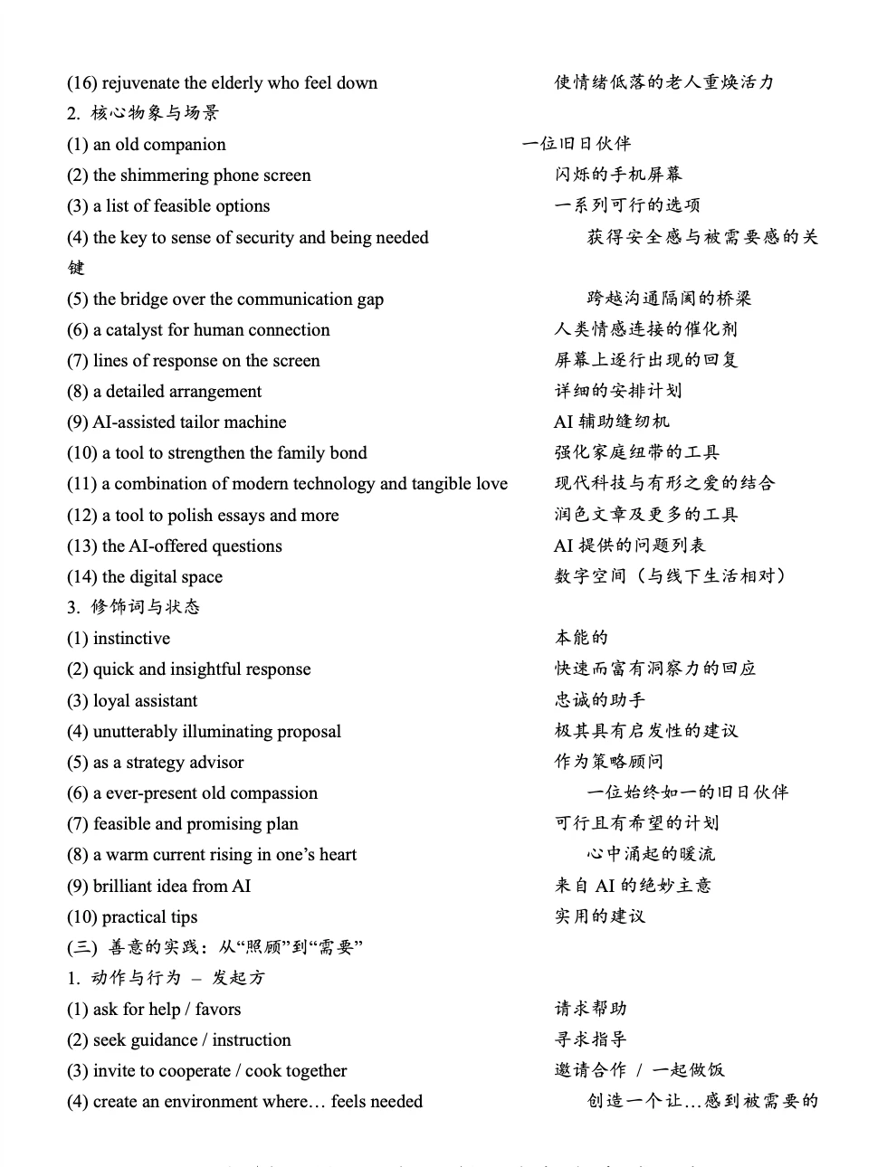 4. 考场速用:审题时梳理原文情节线索,在续写段落的人物互动、情绪转折处,快速调取对应短语。