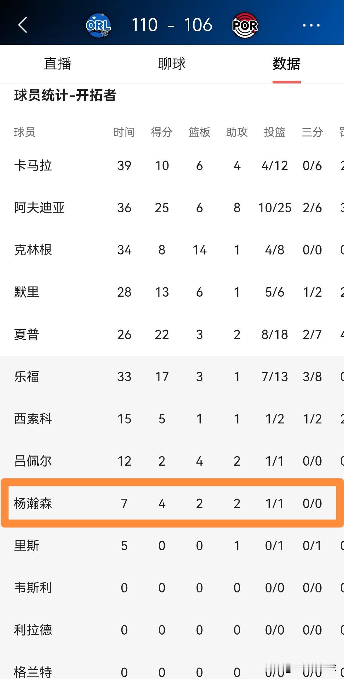 开拓者主帅斯普利特真是太昏庸无能了!在今天开拓者主场以106:110不敌魔术的赛后采访中,斯普利特教练聊到了小将杨瀚森仅仅得到7分钟的上场时间一事,他这样说道:“他在防守端犯了一些错误,比赛最后时刻对他而言节奏有些太快了,克林根在护筐和篮板保护方面表现更好。” 在我看来,斯普利特教练属于典型的昏庸无能,难道就因为杨瀚森犯了一些错误就不让上场了吗?不让上场怎么积累比赛经验从而减少犯错呢?