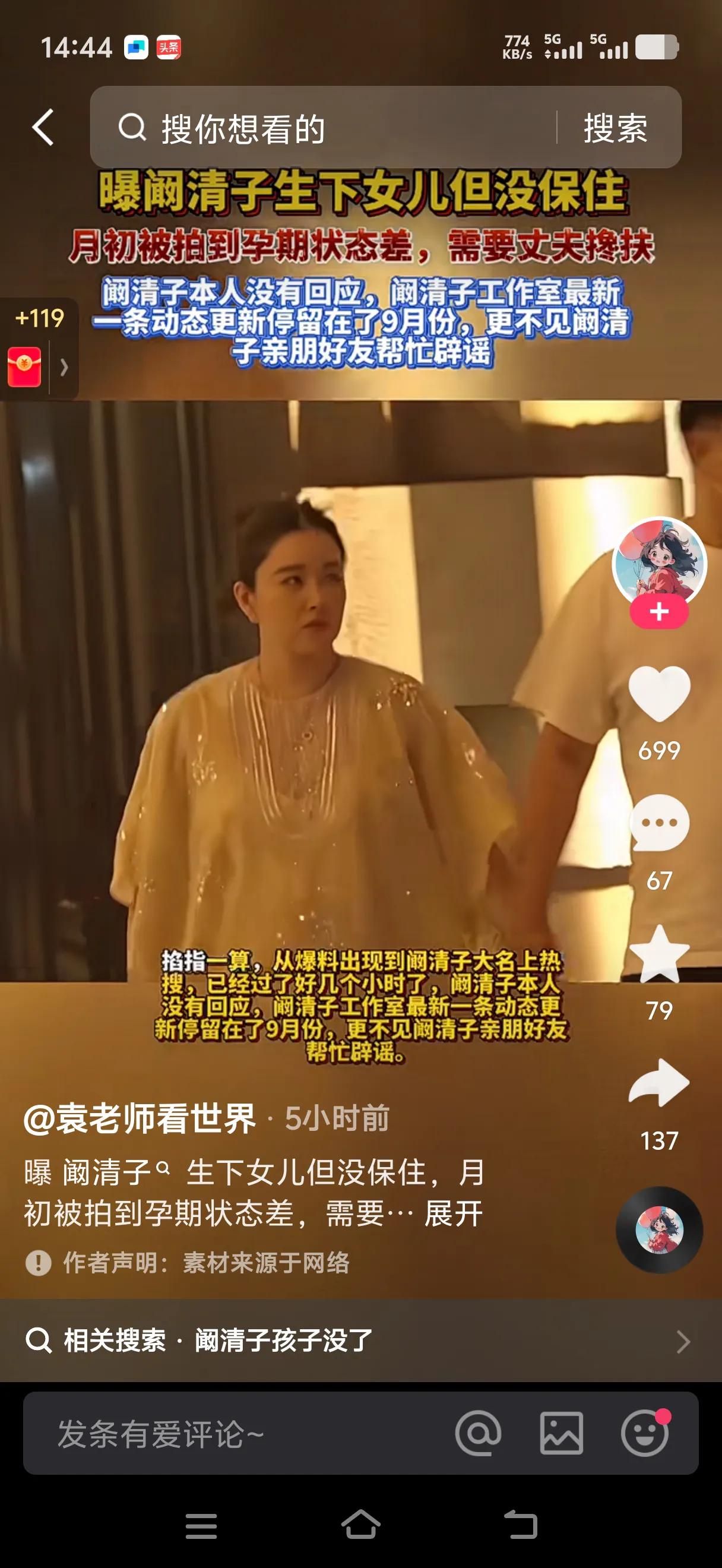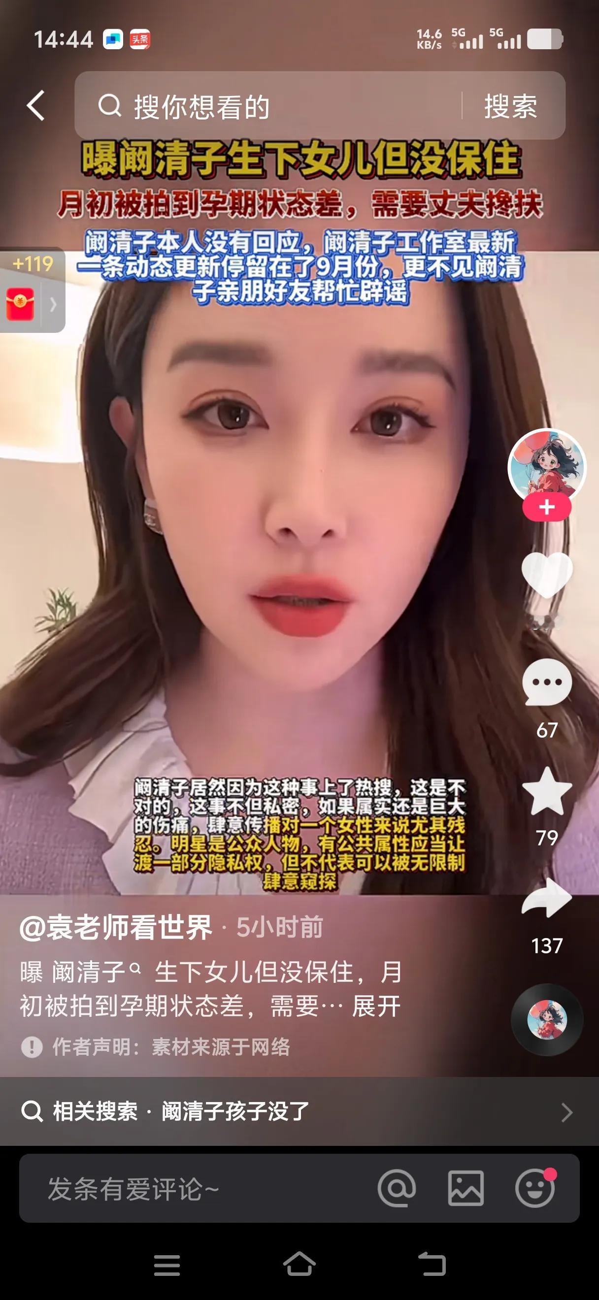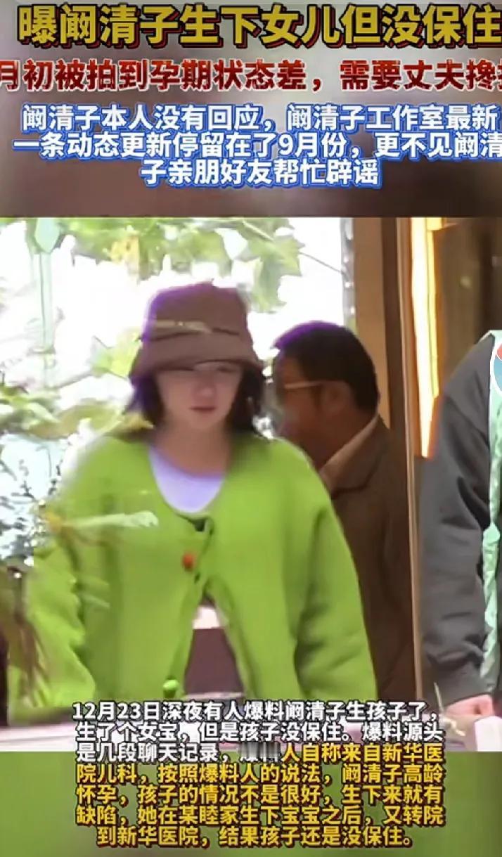 网友喊:本人快出来辟谣。阚清子被曝生产女婴传闻,没有膀胱和肛门已在医院夭折。 十