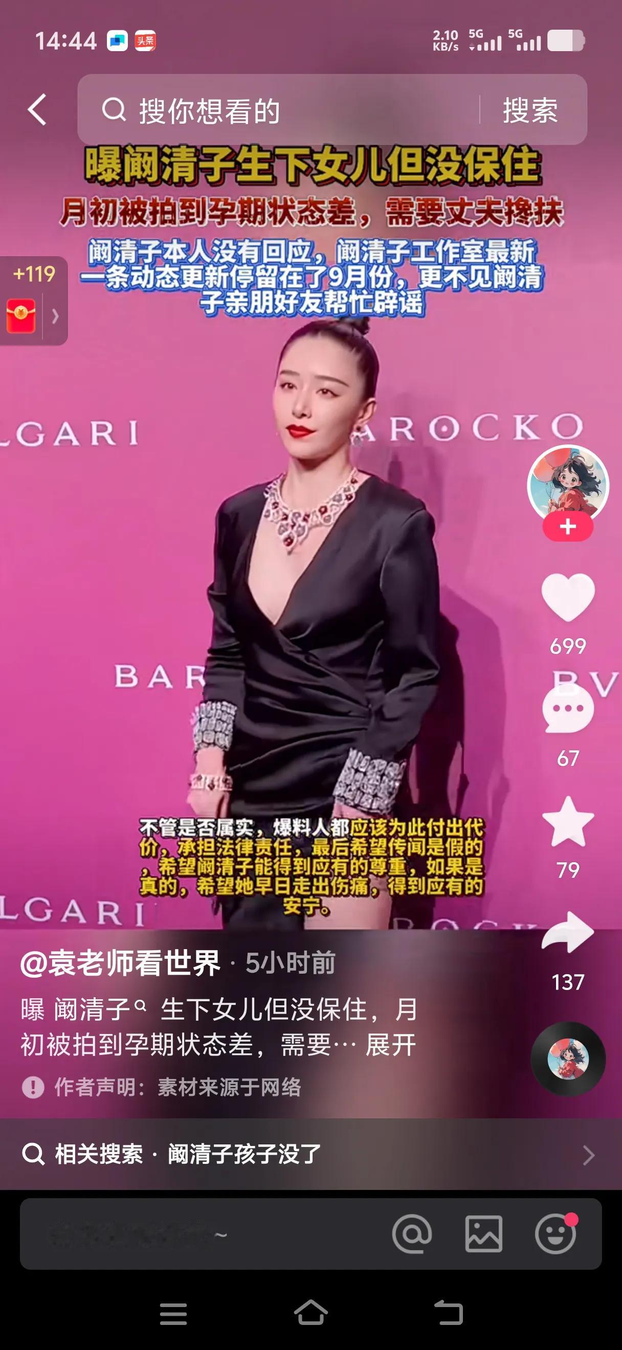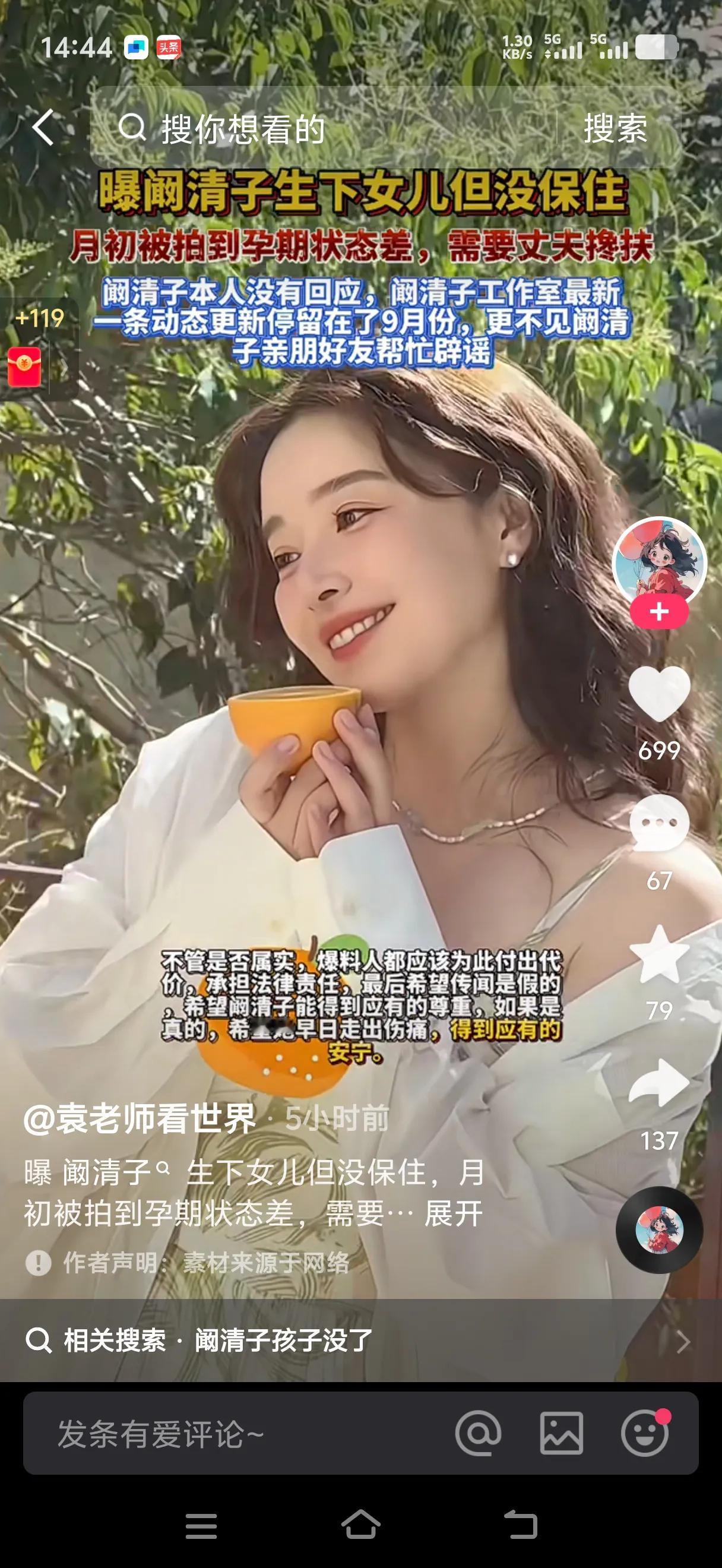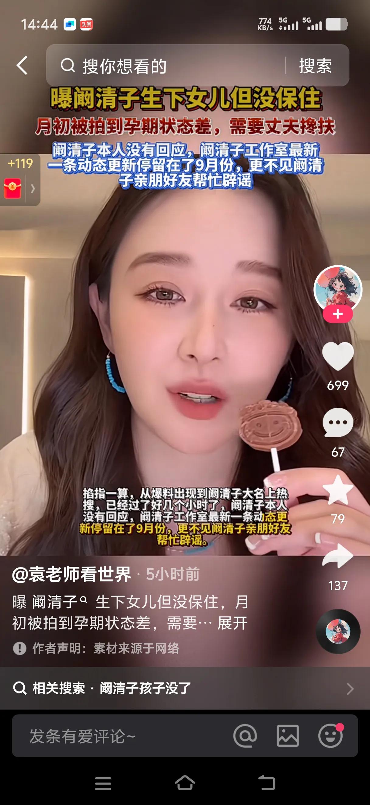 网友喊:本人快出来辟谣。阚清子被曝生产女婴传闻,没有膀胱和肛门已在医院夭折。 十