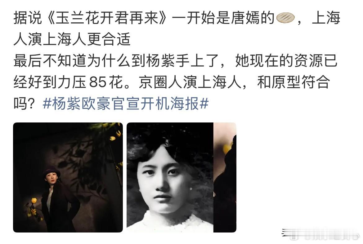 12月24日,唐嫣《此刻的生活》路透!看到唐嫣粉丝后悔唐嫣当初没选《玉兰花开君再来》,还有网友说唐嫣演董竹君更合适,上海人演上海人说上海话和原型更匹配!说实话这事我才知道,但我不认为上海剧就一定要上海人来演才对味,我相信杨紫能演好,同时我认为唐嫣不存在可惜不可惜后悔不后悔的问题,一切都是剧方说的算!唐嫣如今拍《此刻的生活》也不错,挺开心的,没必要纠结已经板上钉钉的事!
