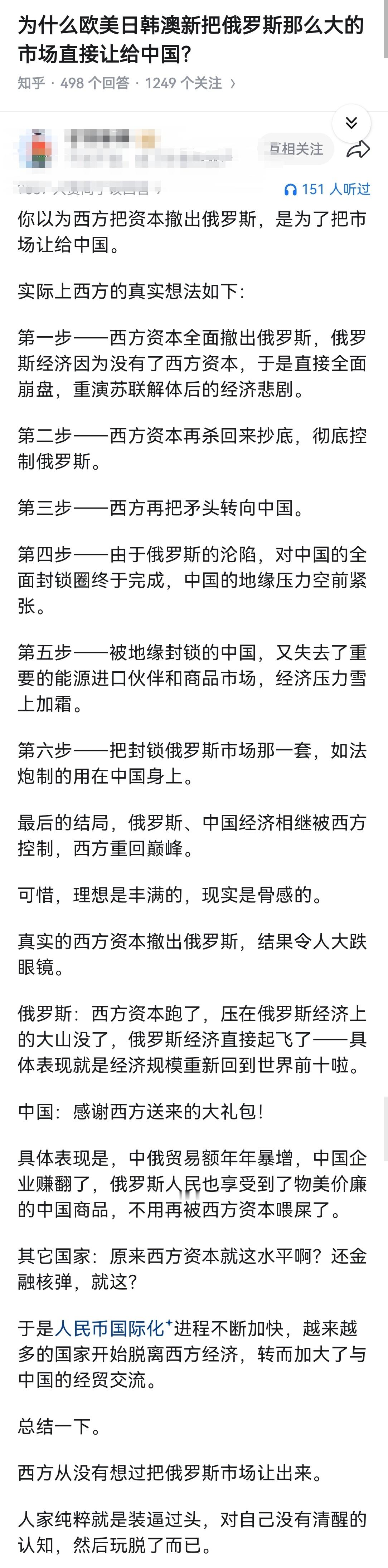 为什么欧美日韩澳新把俄罗斯那么大的市场直接让给中国?