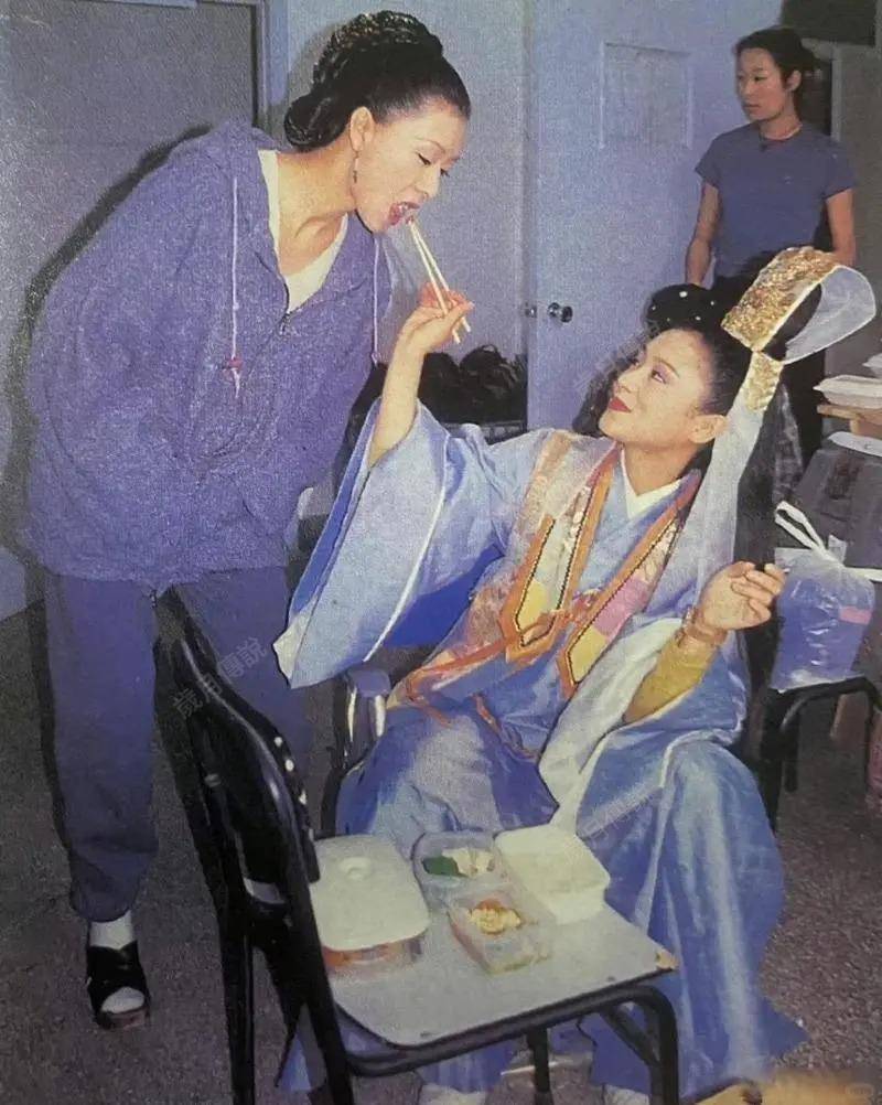 陈红拍戏期间喂夏文汐吃饭。