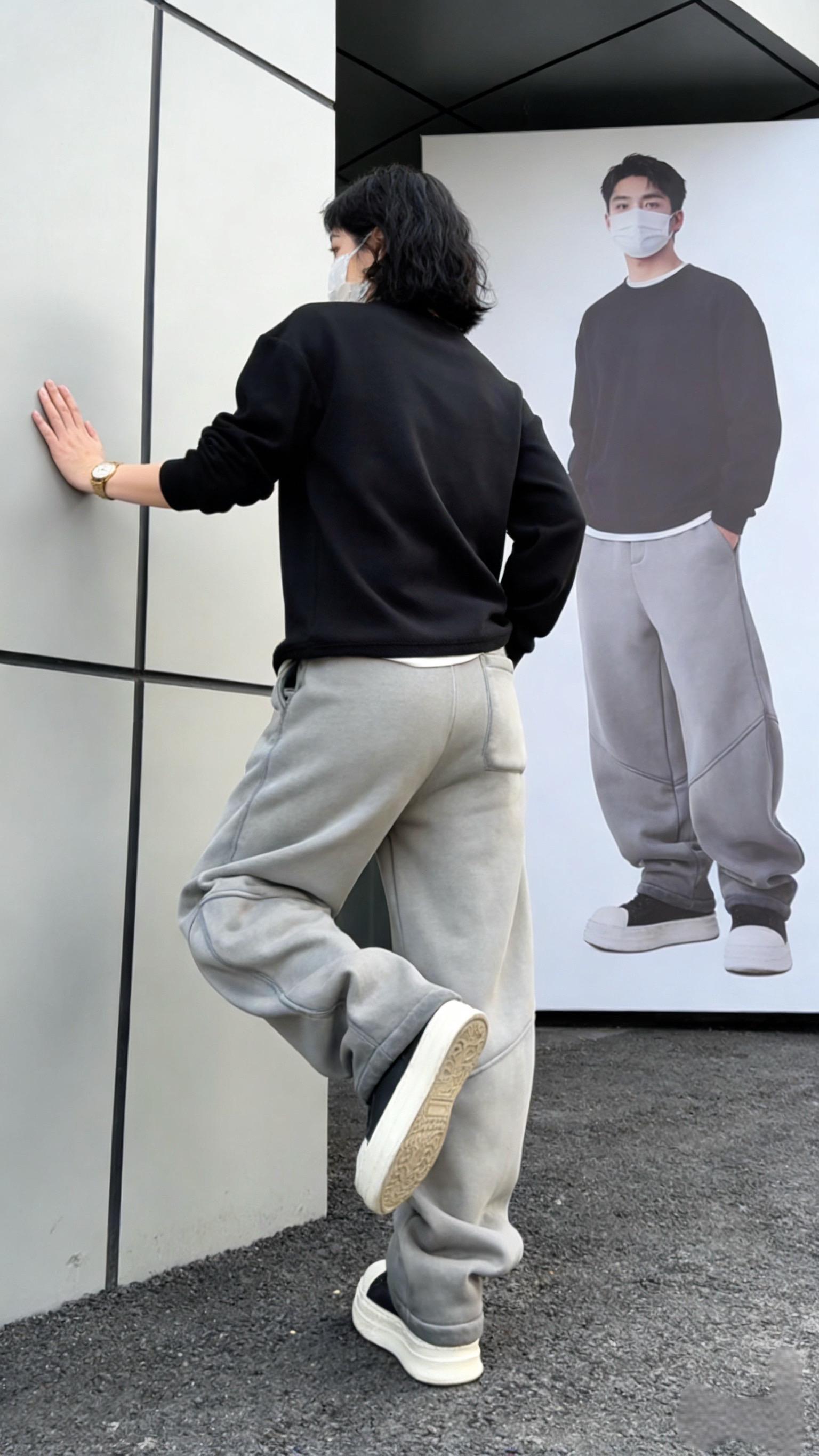 冬季加绒加厚美式复古渐变弯刀卫裤潮流宽松直筒痞帅百搭休闲裤男 男士休闲穿搭男生通勤风ootd推荐必入单品百搭男裤男生穿搭