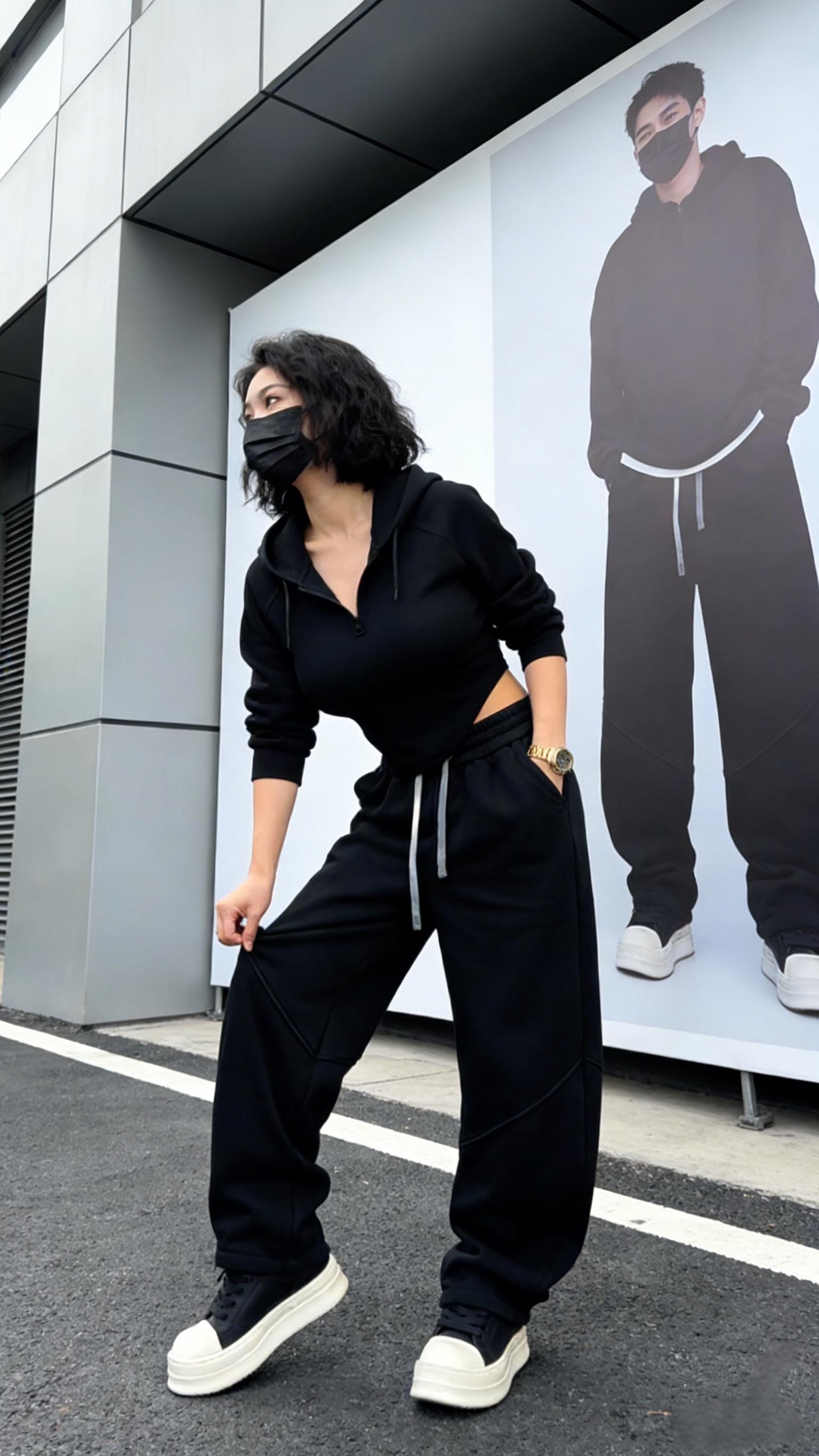 九分紧身打底裤搭黑卫衣和休闲鞋这搭配高级感瞬间拉满九分紧身打底裤能完美