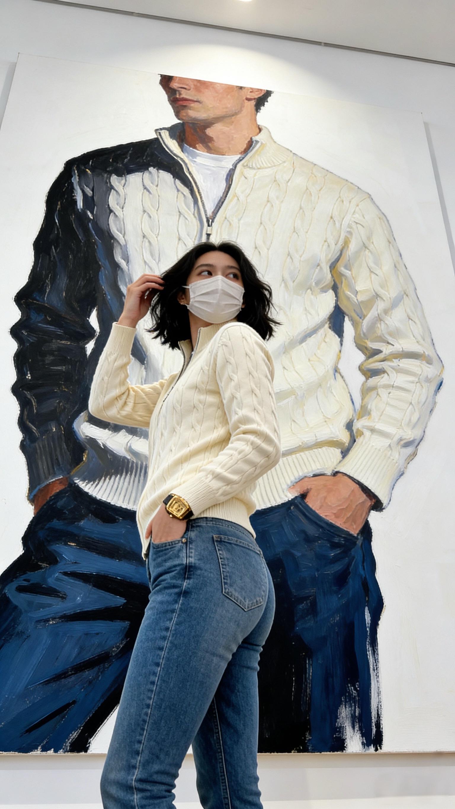 秋日森林中的时尚女王,黑色皮靴与高领毛衣的完美搭配,尽显优雅与自信。