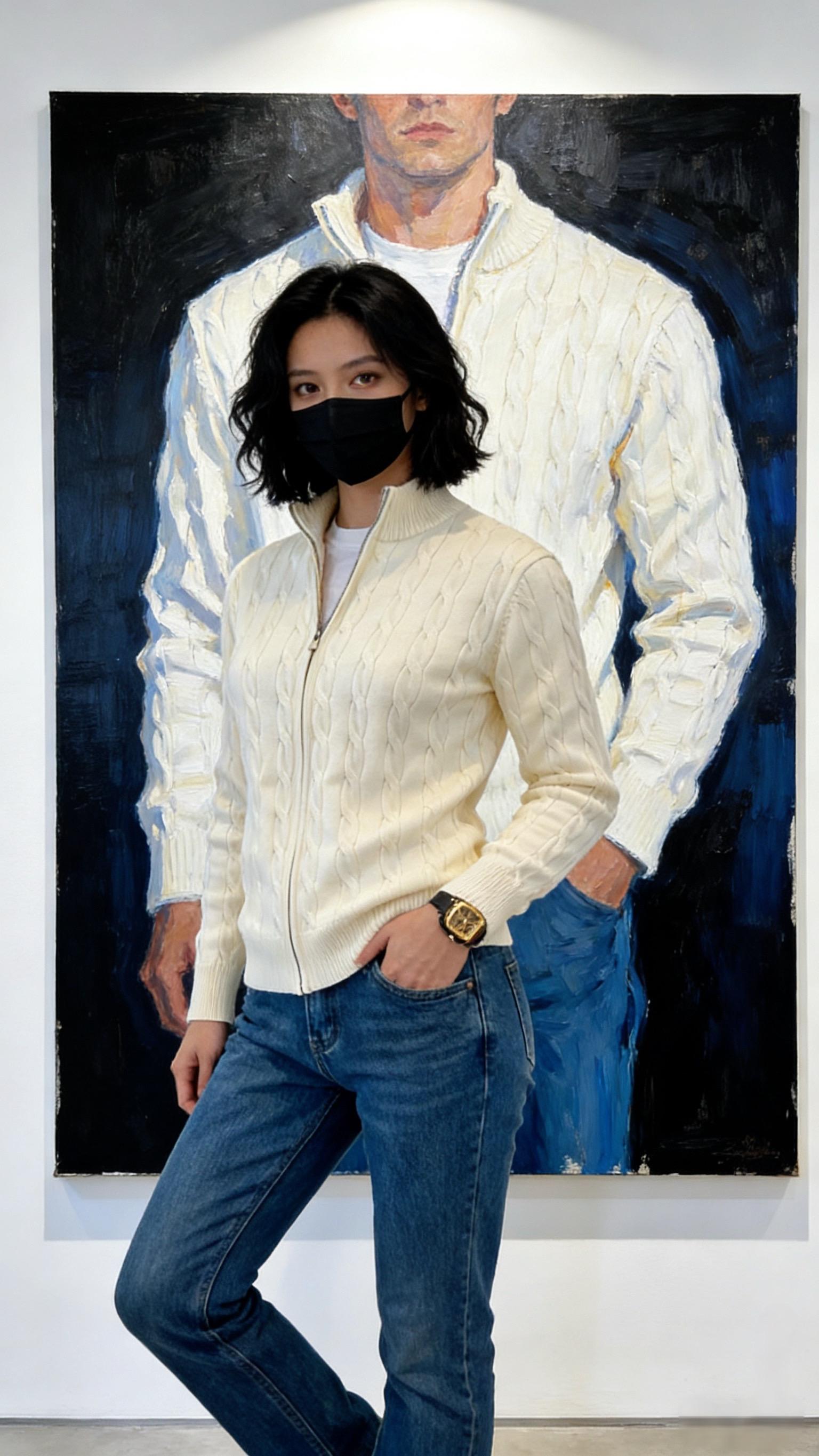 2025秋冬新款麻花纹理立领针织开衫男修身纯色拉链老钱风毛衣外套