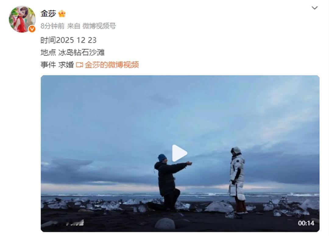 金莎孙丞潇修成正果!19岁年龄差的爱情真的能永恒吗? 今天娱乐圈最大的喜讯,大概就是金莎和孙丞潇终于订婚了。冰岛的钻石沙滩上,25岁的孙丞潇单膝跪地向44岁的金莎求婚成功,两人在极光下拥吻,画面浪漫得像电影截图。 说起来,这对情侣从2022年公开恋情那天起就没少被议论。毕竟19岁的年龄差摆在那里,当初多少人唱衰,说他们是“母子恋”,预测撑不过半年。结果呢,人家不仅稳稳地走了下来,还直接把婚给求了。 孙丞潇追金莎的那段故事挺有意思的。据说是在一个饭局上认识,男方一见钟情,然后连续53天给金莎做了159道不重样的菜。这毅力,别说俘获金莎的芳心了,就是放到美食节目里都能拿个冠军。 不过光有厨艺可不够,真正让舆论开始转向的,是他们在《爱的修学旅行》里的表现。那个节目里,孙丞潇虽然被吐槽“呆萌”,但细节见真章——高原上金莎缺氧,他全程背着爬山;谈到婚前财产公证,他大方表示支持,说要清清楚楚。这些举动,慢慢让人看到了这个年轻男孩的担当。 今年8月还有个插曲,孙丞潇被拍到疑似在酒吧牵别的女生,结果他15分钟内就火速辟谣,金莎也立马站出来力挺。危机处理得这么干脆利落,反而给他们的感情加了不少分。 如今修成正果,倒是让人想起金莎自己说过的话:“感情从不用时间丈量,舒服的状态才是刻度。”年龄差大的恋爱从来都不容易,但看他们这一路,外在的差距或许真没那么可怕,灵魂能不能同频才是关键。 说到底,爱情这东西如人饮水,冷暖自知。从被群嘲到被祝福,金莎和孙丞潇用三年的时间证明了一件事:在真爱面前,年龄从来不是障碍,而是独特的风景。