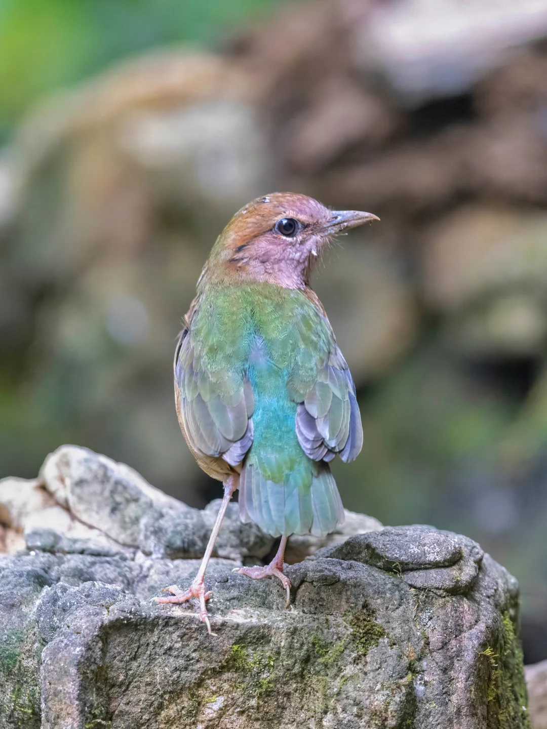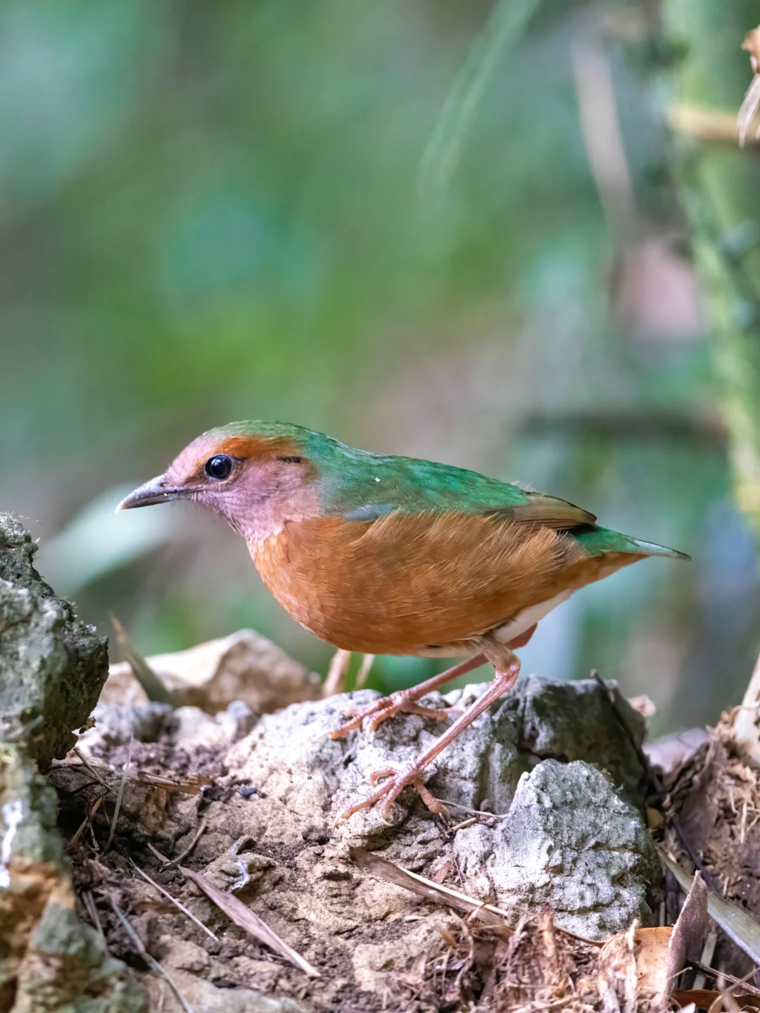 蓝背八色鸫在我国只分布在海南和广西西南靠近越南的地区,又由于它们只活跃在森林底层,所以不容易找到。以前在海南尖峰岭见过两次,都光线太暗,遮挡太多,没怎么观察好。这次在弄岗著名的鸟点,当季很稳,简直爽拍。
