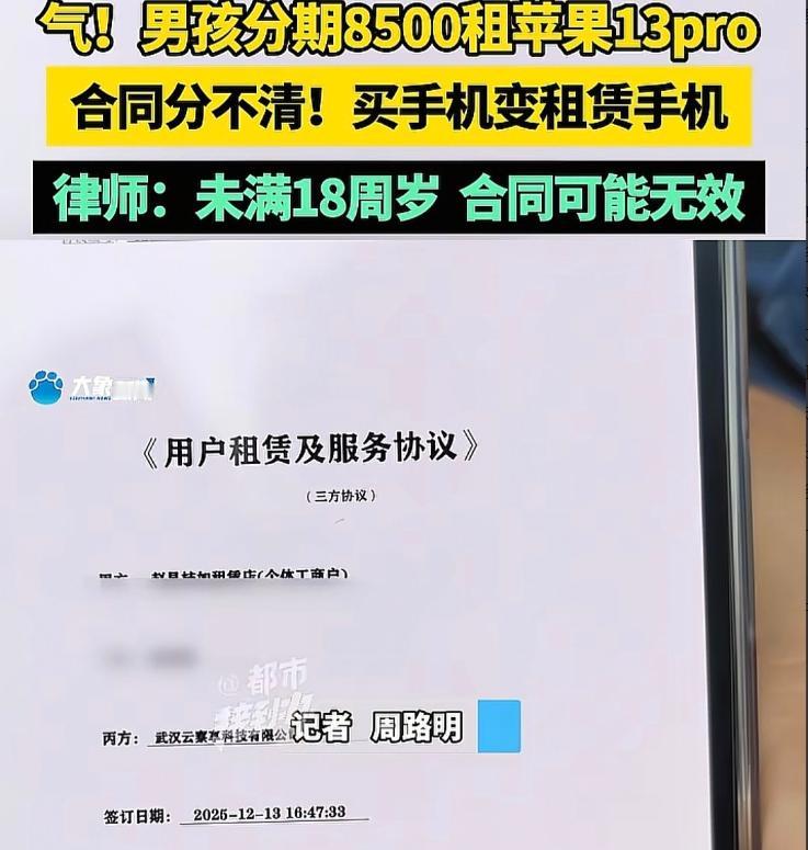 河南,16岁小伙分期8500元租苹果13Pro,一期还940元,要还8期,可要知