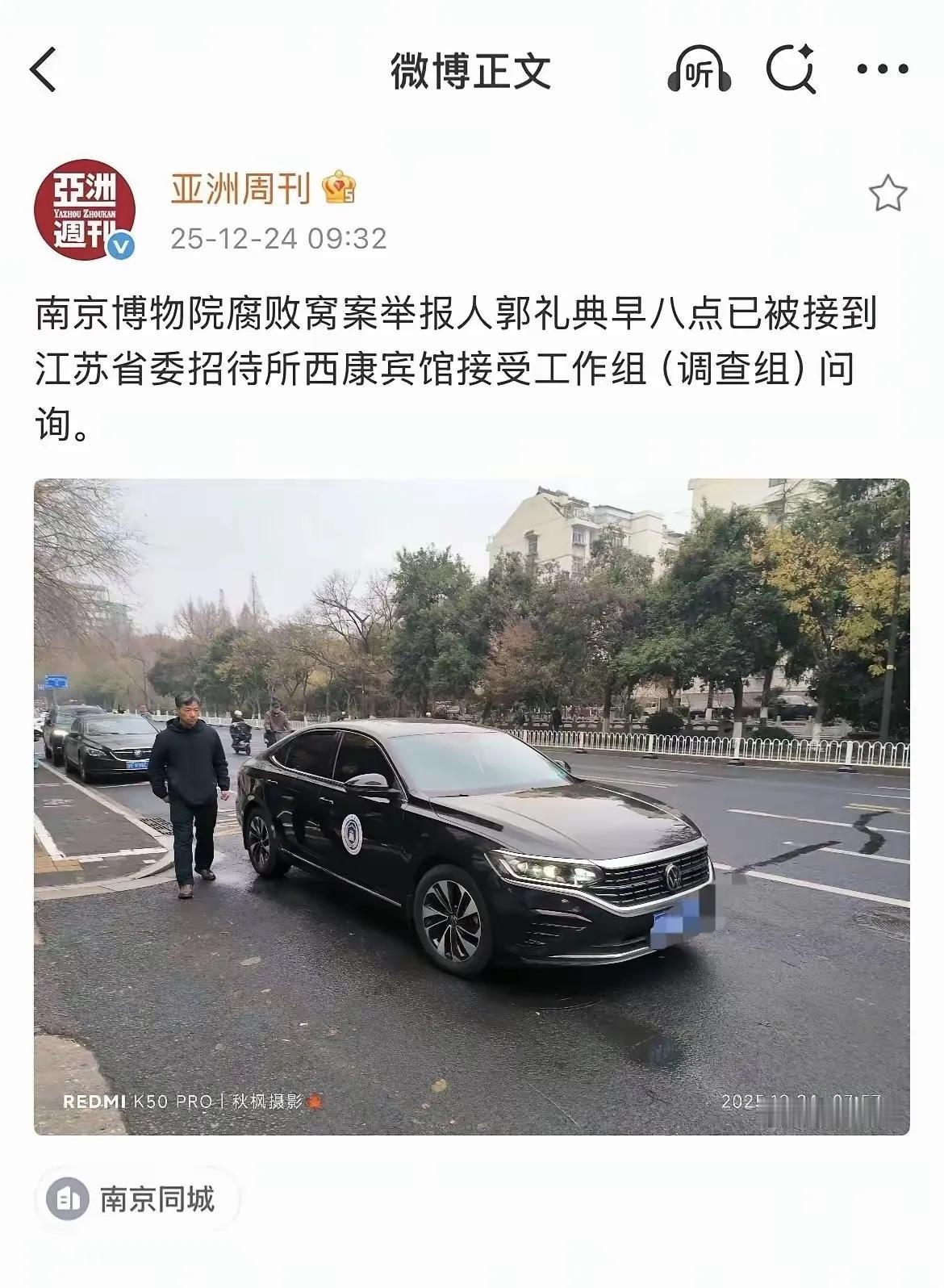 真正的行动开始了! 亚洲周刊报道,南京博物院腐败窝案实名举报人郭礼典,已经被接到调查组接受询问。 这是一条好消息,说明真正的行动终于正式开始了!郭礼典手上掌握的大量第一手资料,将被检查组拿到。希望此案由此撕开一个缺口,之后顺藤摸瓜,把所有涉案人员一网打尽!