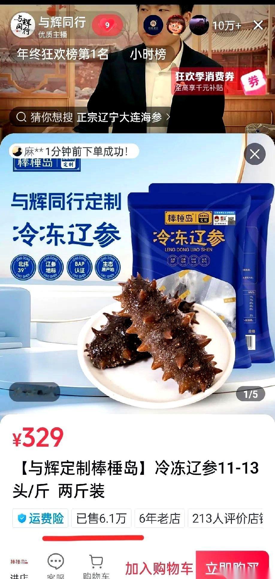 就今晚,光两款产品,卖了4000万。 看得我有点懵,一个是海参,一个是咱们天天吃的大米。 先说那个海参,329块两斤,一下卖了6.1万单,销售额接近2000万。 算下来一根就得十几块钱。 想象了一下,一家四口人,早餐一人来一根,一顿饭就奔着五六十块去了。 然后是那个米,通河大米,一斤3.99元。 这个更吓人,直接卖了47.4万单。 那是474万斤啊。 说真的,快4块钱一斤的主粮,几十万单就这么下单了。 这消费实力,确实有点超乎想象。