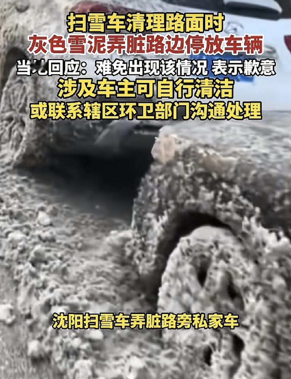 沈阳有网友吐槽扫雪车在路面清理积雪的时候,不小心把一些灰色的水泥洒在了路边的停放车辆,给很多车主造成不便。有关部门回应,扫雪车在清理积雪时,难免会对周边的车辆造成影响。对此也深表歉意,建议车主自行处理,或者是联系环卫工人处理。