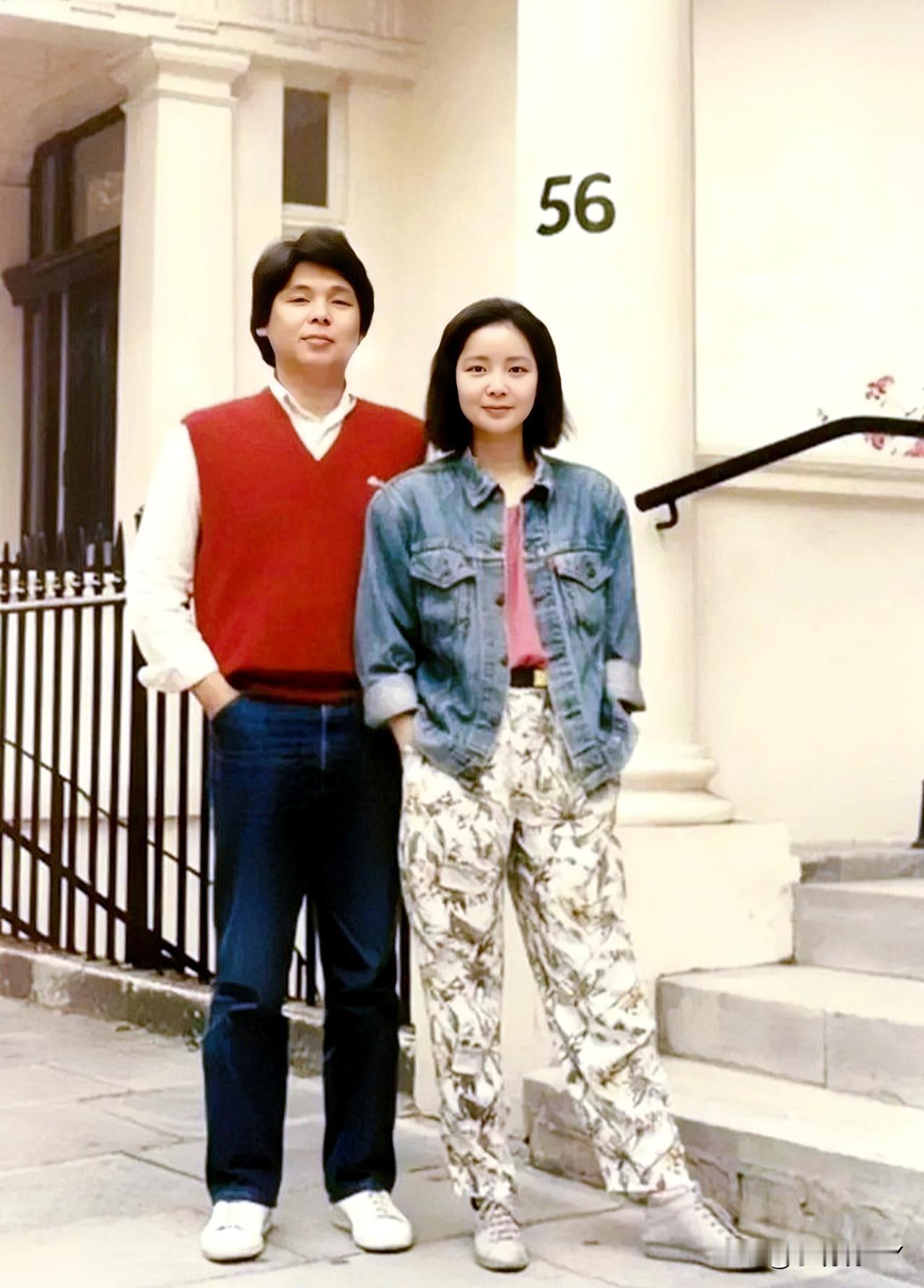 这是一代歌后邓丽君和她弟弟在英国的一张合影留念照,拍摄于一九八四年。照片中姐弟二人穿着非常摩登,画面也十分温馨,惊艳了时光。