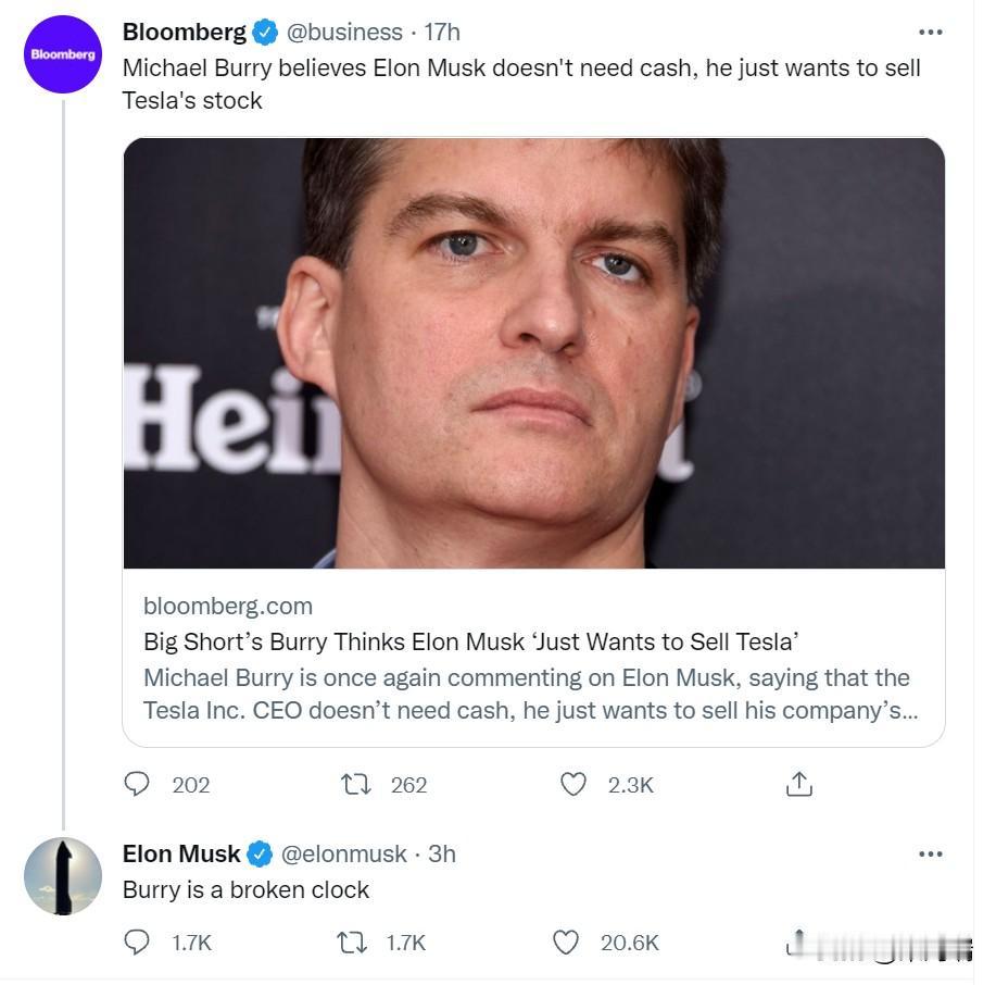 迈克尔·伯里(Michael Burry)是华尔街最具传奇色彩的逆向投资人之一,因在2008年金融危机前成功做空美国次级贷款市场而闻名于世,其真实事迹被改编为著名电影《大空头》(The Big Short)。 大空头迈克尔·伯里批评马斯克是傻子。对此,甲骨文创始人拉里·埃里森反驳,“你居然说埃隆是白痴?他可是能让火箭在海上无人船上着陆啊。你着陆过火箭吗?我只想知道你是谁,你到底取得了什么成就?”。说实话,除了推特,马斯克其他项目 都体现了人类顶尖水准,而迈克尔·伯里,可不是顶尖的基金经理。