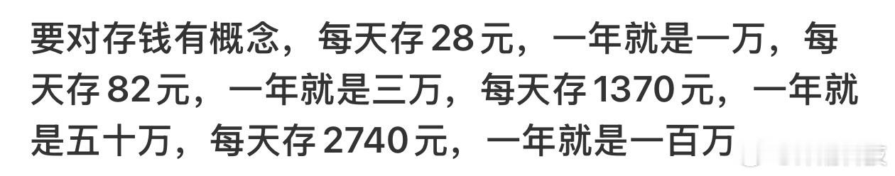 每天存82块一年就有三万块 懂了,如果每天花28元,一万够我活一年。如果每天花82元,一年就是花三万。