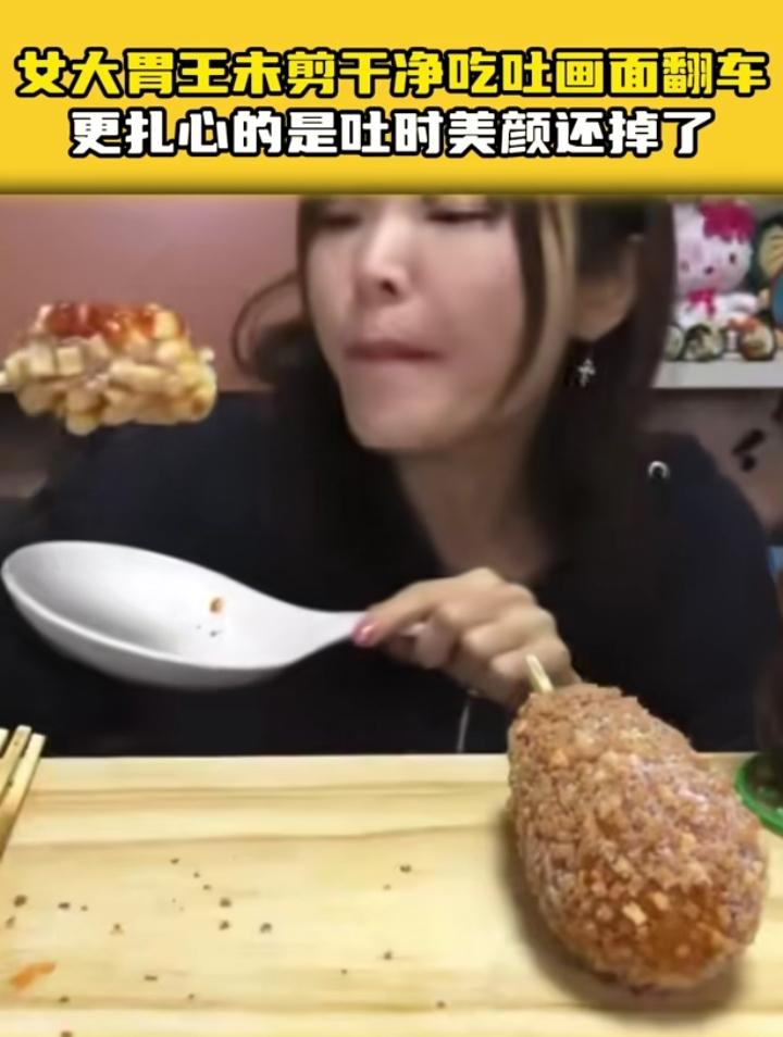 有的网红会“翻车” 有的网红是“车翻了又翻” 日本某知名大胃王女主播彻底凉凉,拥有百万粉丝,她在直播吃东西时,偷偷往外吐,结果被镜头拍到了。 更搞笑的是她吐的时候美颜掉了,镜头里的甜美少女直接变成了邻居大姐,两重人设同时崩塌,日本无数居家大叔情绪崩溃,自己那么喜欢的网红,竟然从头到尾都在欺骗粉丝。 正所谓骗得了一时,骗不了一世,别太相信网上的东西,眼见不一定为实。