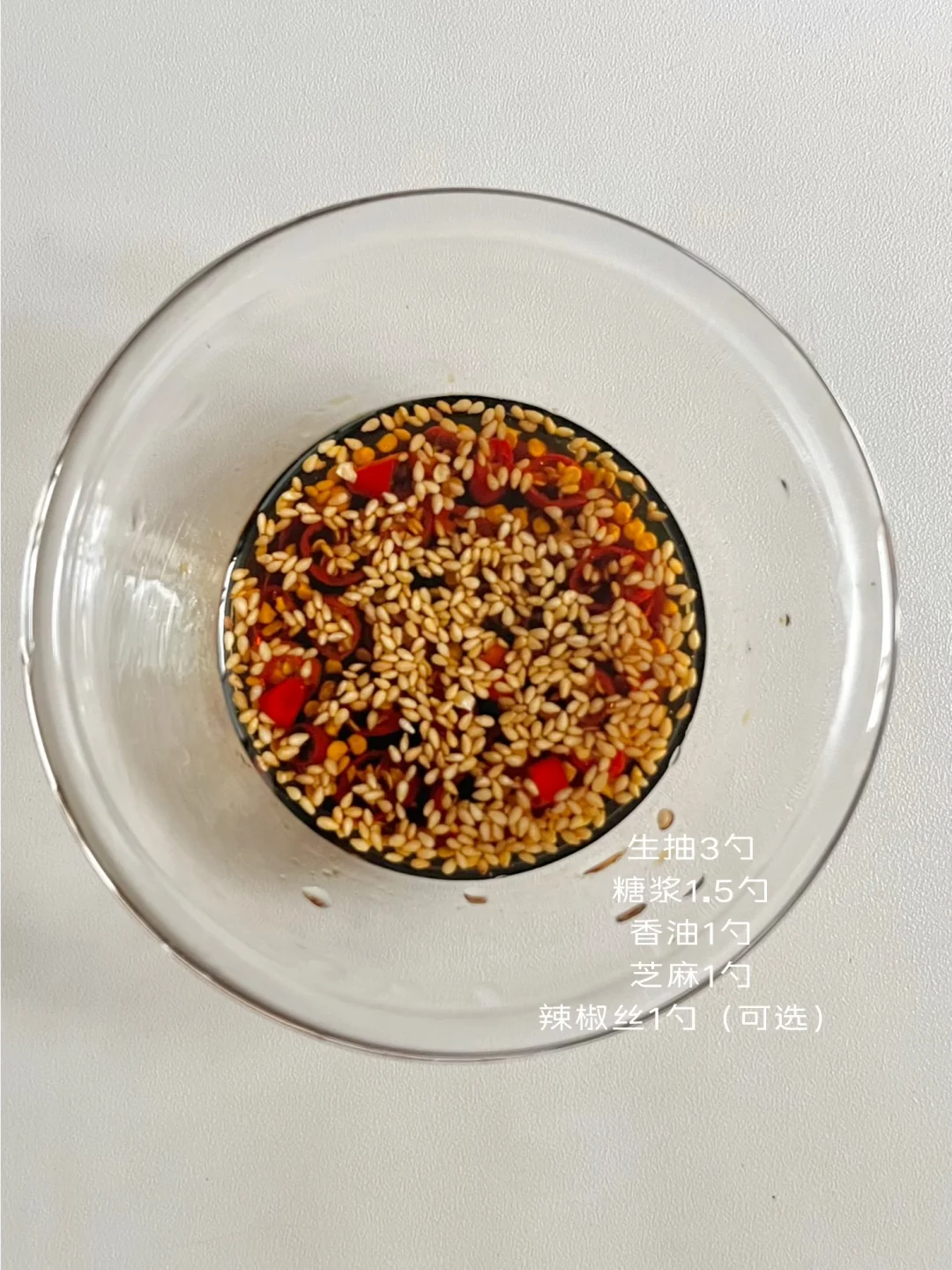 🧂拌饭灵魂酱汁:生抽3勺,糖浆1.5勺,香油1勺,芝麻1勺,辣椒丝1勺(可选)