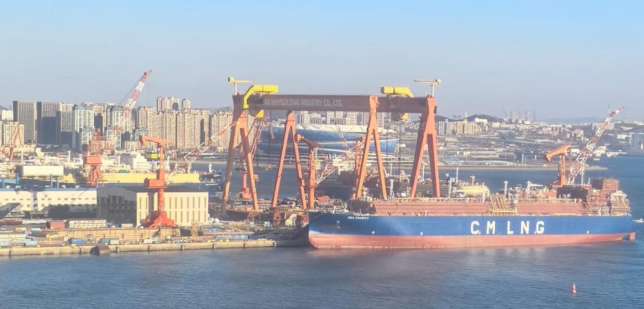 12月25日北方某地004侧视图 LNG船走了一艘,但还有一艘,004露出一半,可以清晰地看到突出船坞坑的船体 以后可以基本每日观察004这“世一航”的建造进度了 图源小红书烽火问鼎计划