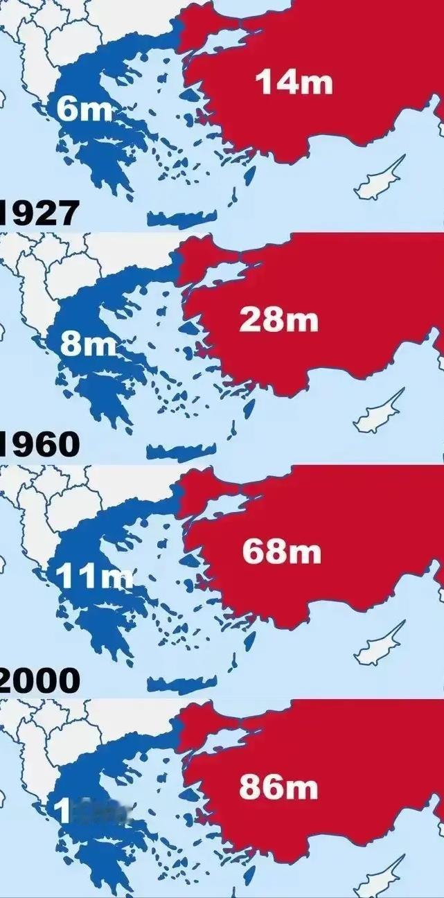 从土耳其和希腊人口变化,真能深刻感知人口的重要性   如果时间能说话,它大概会在地中海边上感叹一句:有人在老去,有人在崛起,1927年,土耳其1400万人,希腊600万,两国人口还算旗鼓相当。   但到了今天,土耳其已经是希腊的8倍多,这可不是简单的数字游戏,而是一场静悄悄却影响深远的“人口对决”。   很多人对人口问题没啥概念,总觉得“人多了吃不饱,老了照样退休”,可事实是,人口结构的变化,直接影响一个国家是往上走,还是往下沉。   土耳其和希腊这两个邻居,地理上隔着爱琴海,历史上有过恩怨情仇,但百年来,他们的命运差距,几乎是被人口这一变量慢慢拉开的。   土耳其一路狂飙,从上世纪中叶开始就保持着高出生率,哪怕近年来也保持在稳定水平,而希腊却在过去三十年里,生得少、老得快,年轻人还一个劲儿往外跑。   这就导致一个现实:2024年,土耳其有8600万人,希腊只有1000万不到,一个像是青春期的少年,精力充沛;另一个像是刚过花甲的中年人,开始担心养老金发得够不够。   1923年,土希之间签了一个很不寻常的协议《洛桑条约》中的人口互换条款,土耳其把120万东正教徒“送”回希腊,接回了40万穆斯林。不是按国籍换,而是按宗教划线,谁信什么神,就去哪边。   这场交换在当时是政治解决民族问题的一种“创新”,但也埋下了各自发展的种子,土耳其失去了大量做生意的希腊人,经济一度受到影响,但换来的是民族结构上的统一,为后来的国家现代化清了场。   希腊收了大批难民,看似“人口增加”,实则加重了财政负担,还埋下了社会融合的难题。   从那以后,两国在人口政策上的选择开始分道扬镳,土耳其主打“生得多”,希腊则越来越追求“生活质量”,结果是一个人口飞涨,一个人口停滞。   别看希腊是欧盟国家,旅游业也火,但国内的“人力账本”早就拉响了警报,2022年,希腊65岁以上的人口占比22.8%,排在全世界前列。   年轻人不愿生,老人越来越多,劳动力市场一边高失业,一边缺技术工人,出生人数创下70年新低,死亡人数却节节攀升。   养老金开支接近GDP的13%,政府只好把退休年龄提到62岁,还得三年一调,按这个趋势,到了2070年,希腊人可能67岁都还在打工。   更麻烦的是,年轻人不光不生,还在往国外跑,去德国、英国找工作,国家想留住人才,结果连基础劳动力都快留不住,不是没政策,而是没吸引力。     土耳其不仅人口多,而且年轻。中位年龄才33岁,正是打拼的年纪,劳动人口占比超过60%,这不仅让它的经济有活力,在地缘政治上也多了底气。   靠着这张“人口牌”,土耳其在北约、欧盟、中东事务中都不再是个被动的角色,总统埃尔多安用人口红利撬动了城市化,也带动了地方政治参与度的提升。   年轻人多,就意味着网络舆论活跃、内需市场庞大、政策执行力强。哪怕经济有起伏,国家的基本盘依旧稳得住。   比如在塞浦路斯问题上,土耳其敢于强硬,是因为它背后站着的是一个八千多万人的国家,而不是一个靠外援撑着的边缘小国。   而在能源、移民、地区安全这些问题上,土耳其的人口体量本身就构成了“战略资源”。   有些国家总把“人多”当成负担,“养不起、管不了、供不上”。但看土耳其这几十年的发展,人口多反而成了优势,只要教育、医疗、产业跟得上,人多就意味着机会多。   而希腊的困境,也不是简单的“老龄化”能解释的。是人口数量下滑和结构失衡一起发酵,才让国家陷入“躺平式发展”,光靠旅游和欧盟补贴,是扛不住未来几十年的社会开支的。   过去,希腊人引以为傲的是文明古国、欧盟成员、生活节奏慢;现在,他们开始焦虑:谁来接班?谁来交税?谁来照顾老人?这一系列问题,归根结底都是“人”的问题。   土耳其和希腊之间,百年前靠一纸协议划清了界线;百年后,却靠人口趋势拉开了国力差距,国家竞争,拼的不是谁喊得响,而是谁能持续发展。   人口,不是冷冰冰的统计数字,而是国家未来的方向盘,一个国家活力的尽头,不是财政崩盘,而是没人可用。   土耳其赢在了人口,希腊困在了结构,而这场看不见硝烟的竞争,还远没有结束,谁能统筹好人口质量和数量,才有资格在未来世界格局中占据一席之地。