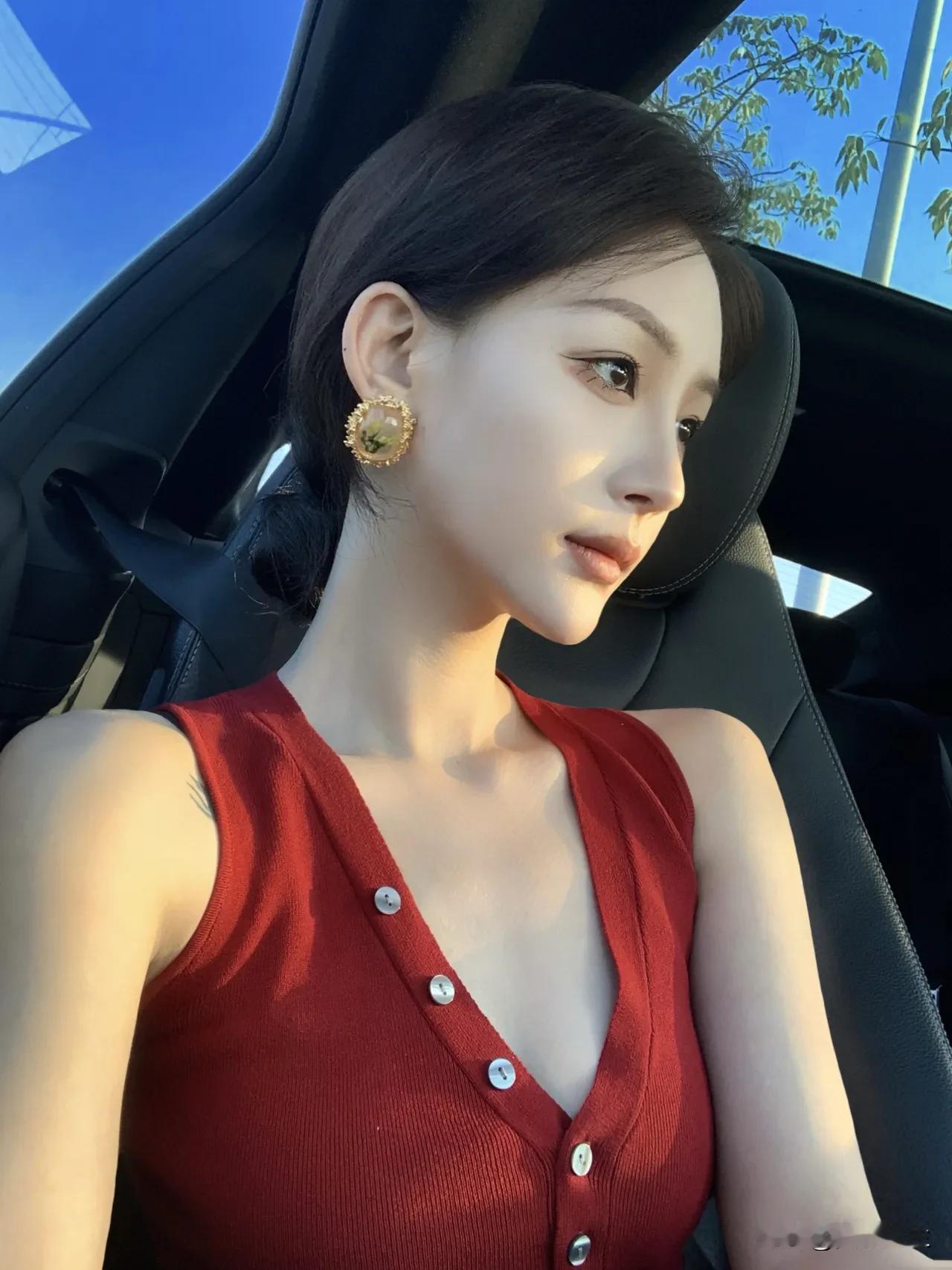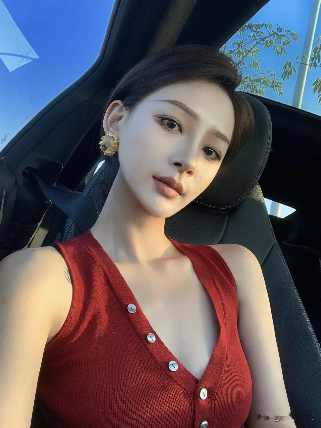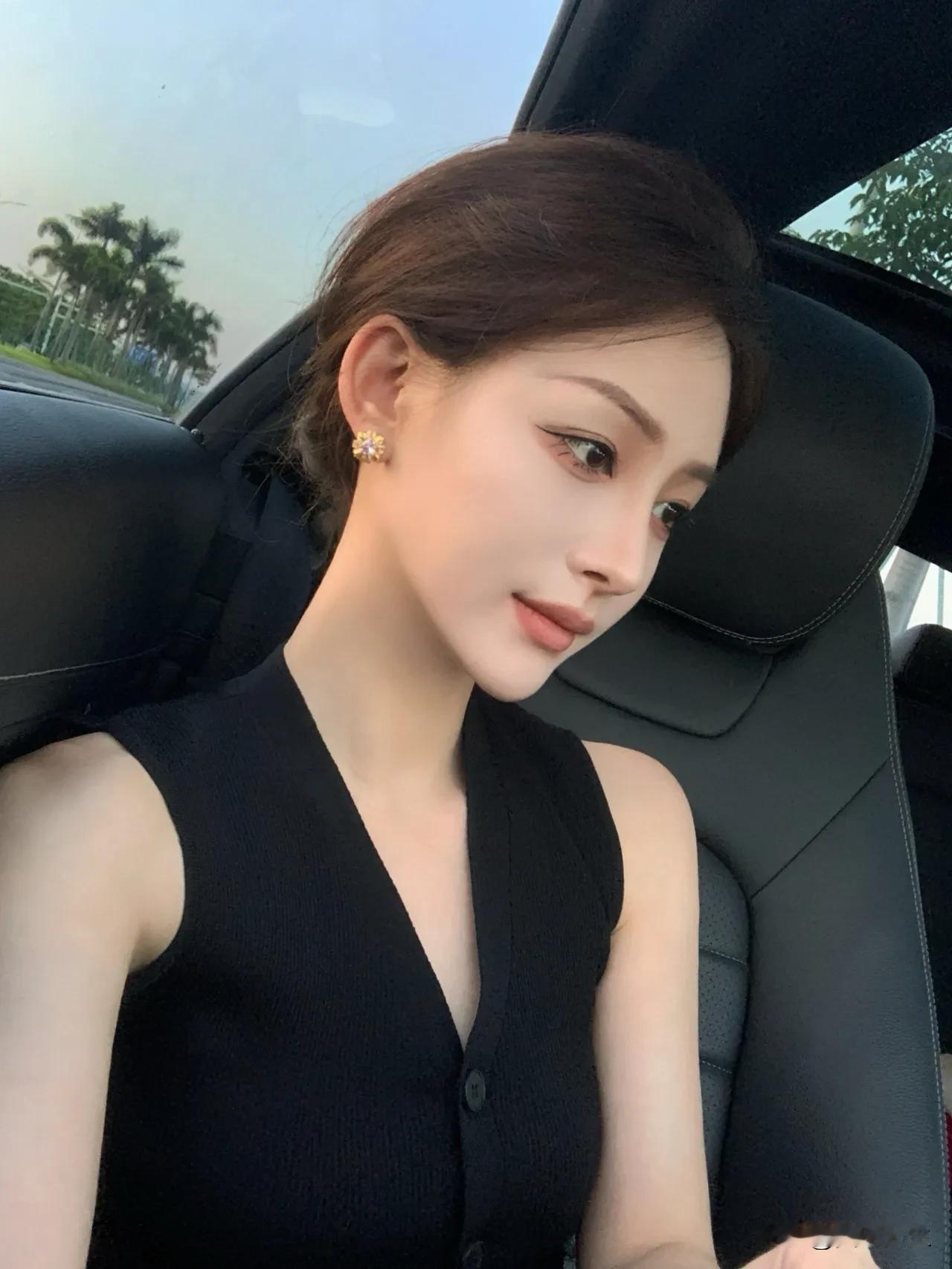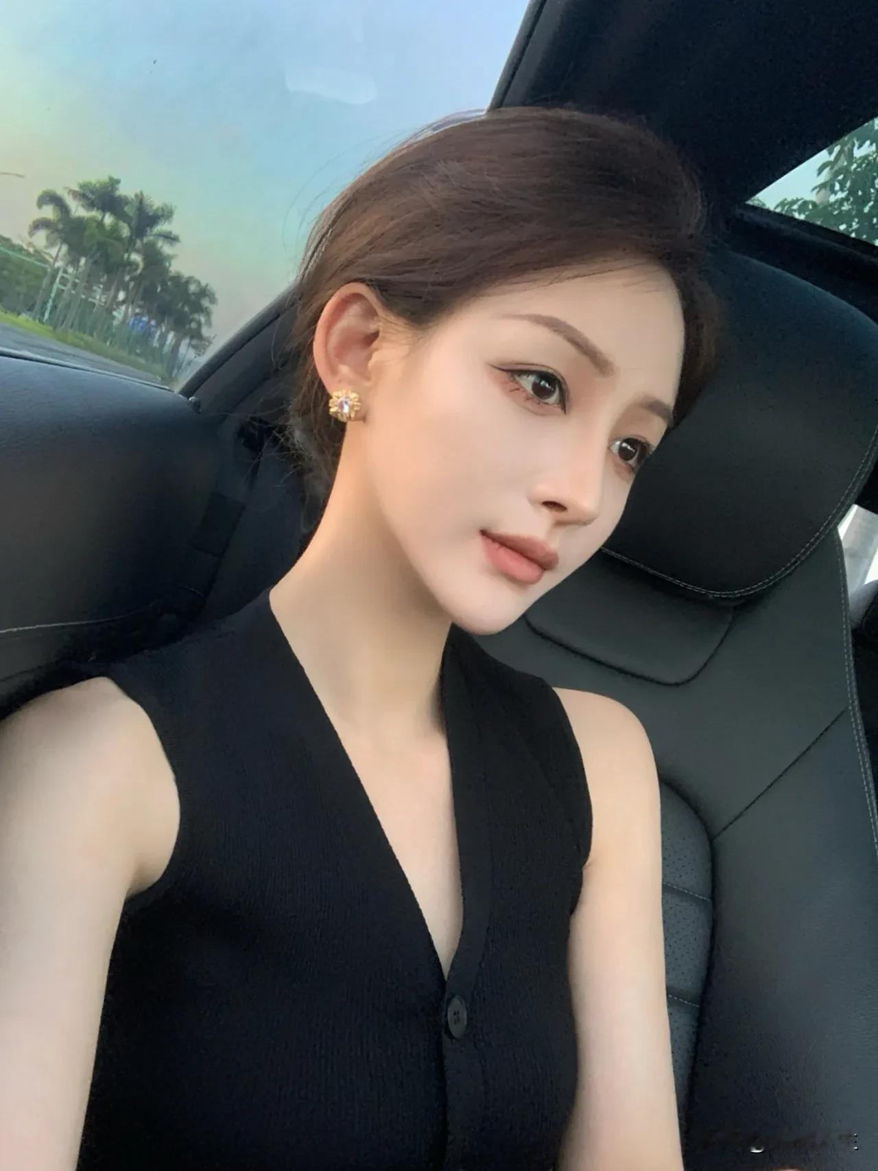 阳光洒进车内, 少女甜美自拍💖