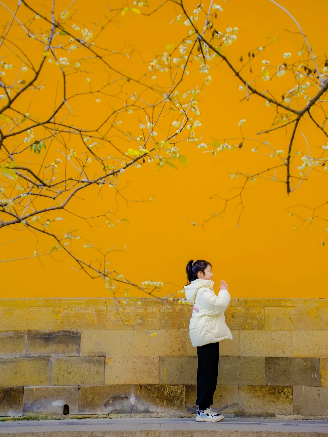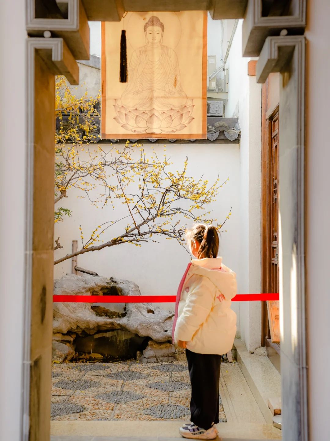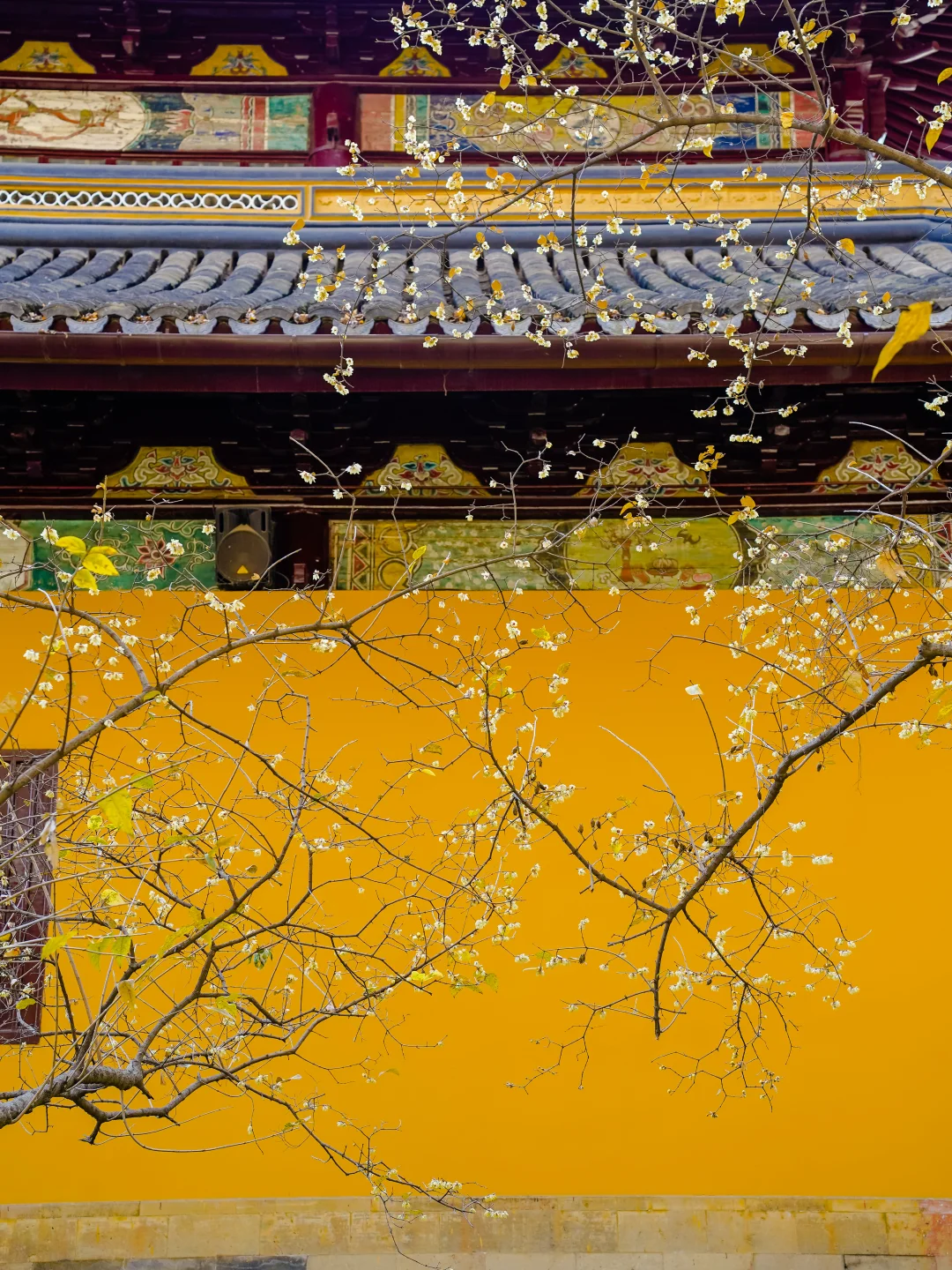 寺内黄墙素瓦,腊梅香混着香火气禅意浑然天成。