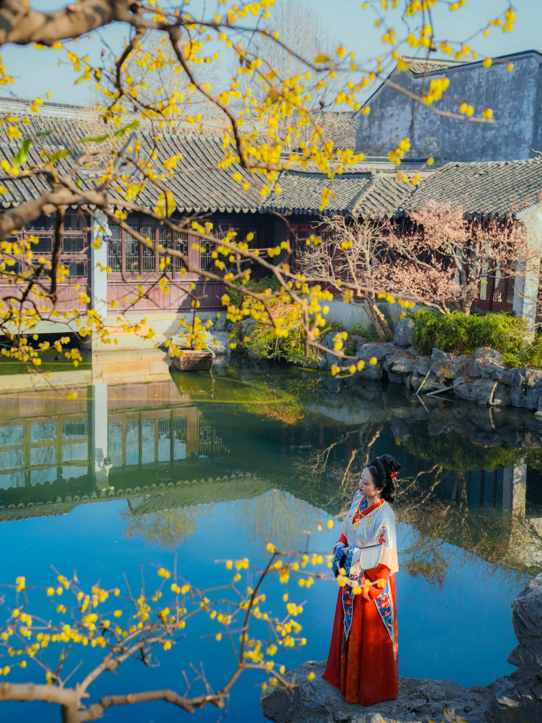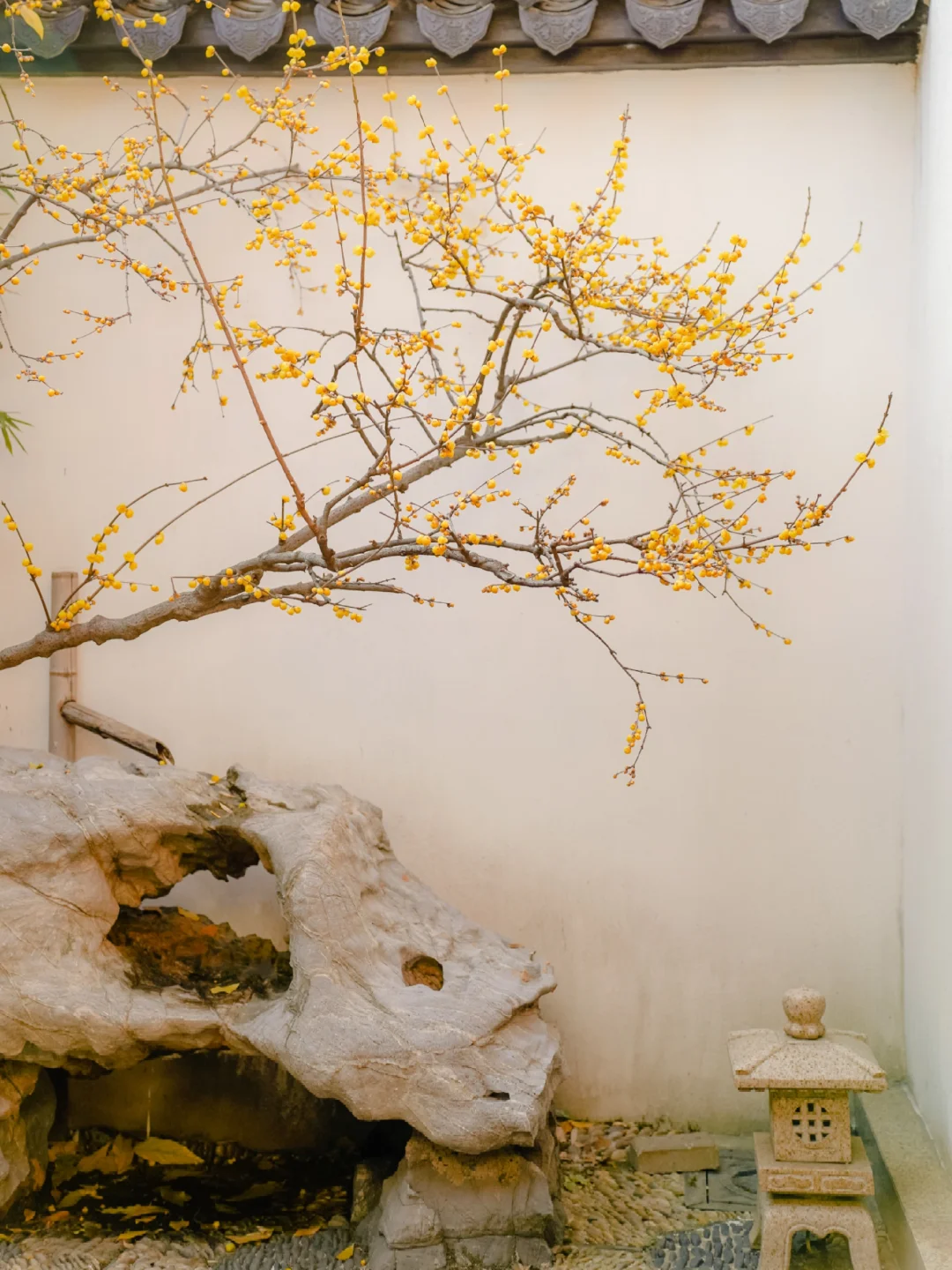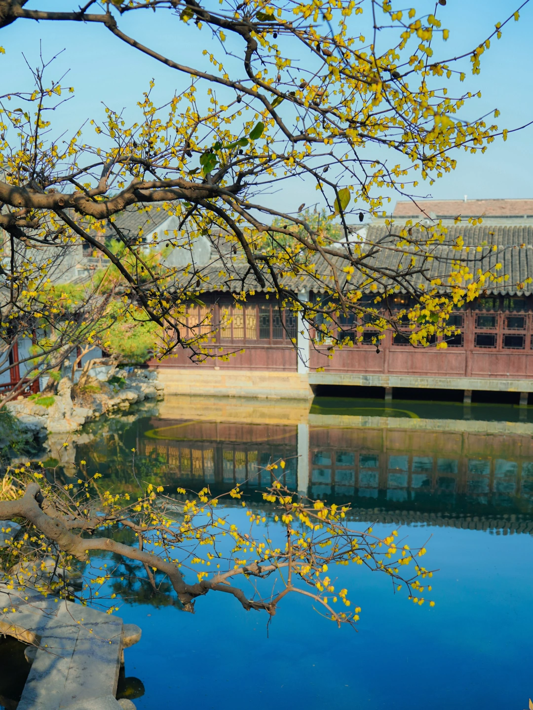“当蜡梅遇上苏州园林,缀满花朵的枝条衬在花窗之外,总能刚好形成一幅绝美的画面。”