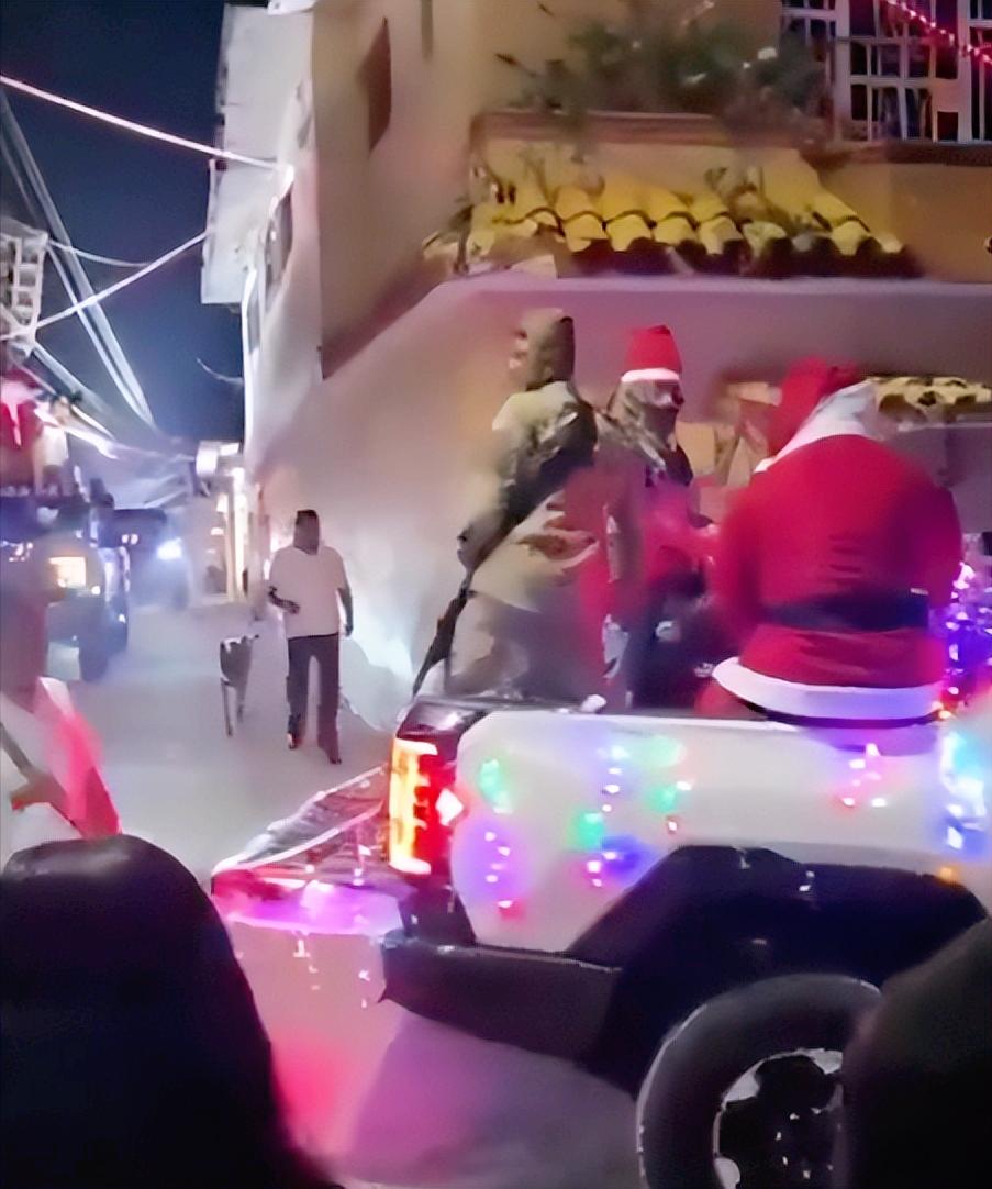 最近墨西哥一则视频火得让人头皮发麻,一群毒贩开着挂满圣诞彩灯的卡车在居民区里招摇过市,车上有人穿成圣诞老人的样子一边抛撒糖果,一边还有人扛着步枪警戒,周围围了不少大人小孩抢糖,场面又荒诞又吓人。   这群嚣张的毒贩来自墨西哥格雷罗州的洛斯·特拉科斯集团,他们开的卡车还是偷来的,更让人震惊的是当地居民说,他们还计划在圣诞节当天搞更大规模的分发活动,把“送礼”的戏码演到底。   最离谱的是社交平台上的评论,有人居然说“感谢他们”,还有人吐槽“政府从来没这么关心过我们”。   可能有人会问毒贩难道转性做慈善了,这根本就是他们的套路,这些贩毒集团早就把“节日送礼”当成收买人心的手段了。   比如之前哈利斯科新一代集团不光在圣诞节送礼物,儿童节还专门给15个城市的贫困小孩发东西,礼物袋上还印着自己集团的名字,还有海湾集团,疫情期间和复活节也到处发食品篮,拍了照片发网上装好人。   他们这么做说白了就是拿点小恩小惠换老百姓的支持,一方面让大家觉得他们“靠谱”,以后政府来打击的时候,有人能给他们通风报信。   另一方面也是在赤裸裸地炫耀实力,带着枪在大街上活动警察都管不了,更可怕的是这种套路真的能骗到不少人,甚至有小镇专门立牌子感谢毒枭送的节日礼物,气得墨西哥总统都下令调查当地官员。   老百姓为啥会买账,因为墨西哥有不少贫困社区,政府的公共服务基本是空白,不少人生活困难也没人帮。   而毒贩就趁这个机会补位用一点糖果、玩具,就换来了部分人的好感,有调查显示光哈利斯科新一代集团就雇了46万年轻人,甚至有10岁的小孩被拉去干坏事。   毒贩这么嚣张的背后其实是政府的管控失效,这次格雷罗州的毒贩公开扛枪巡游,当地官方至今没说一句话。   要解决这个问题光靠打击毒贩不够,政府得真正把民生管起来,让老百姓不用靠毒贩的小恩小惠过日子,否则这样离谱的“表演”会在墨西哥不断上演。