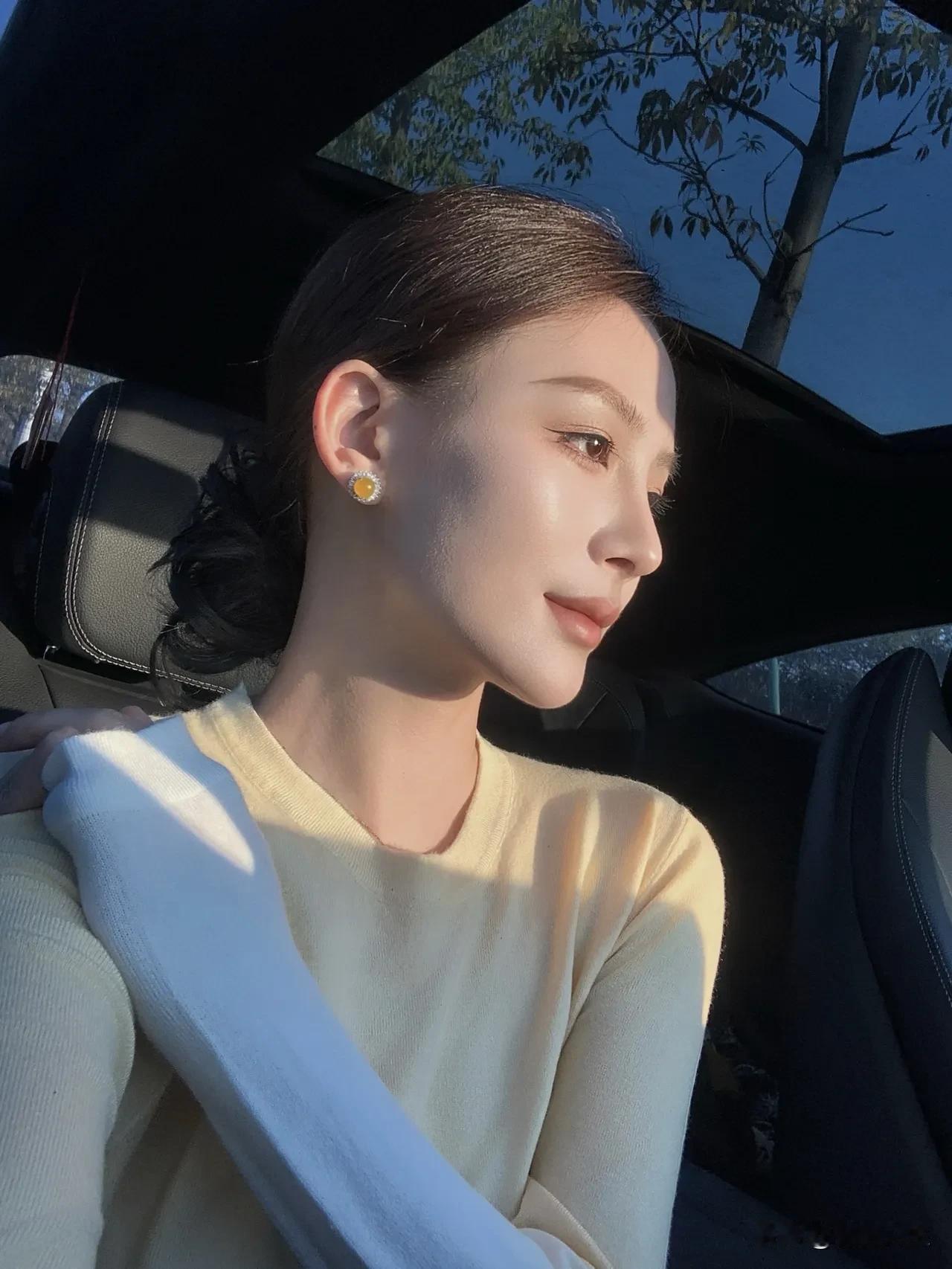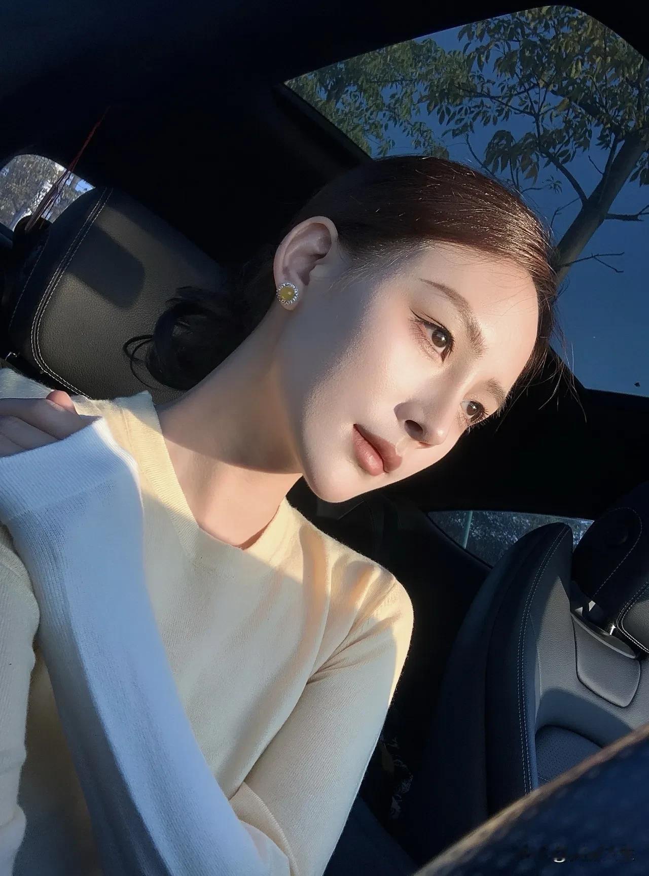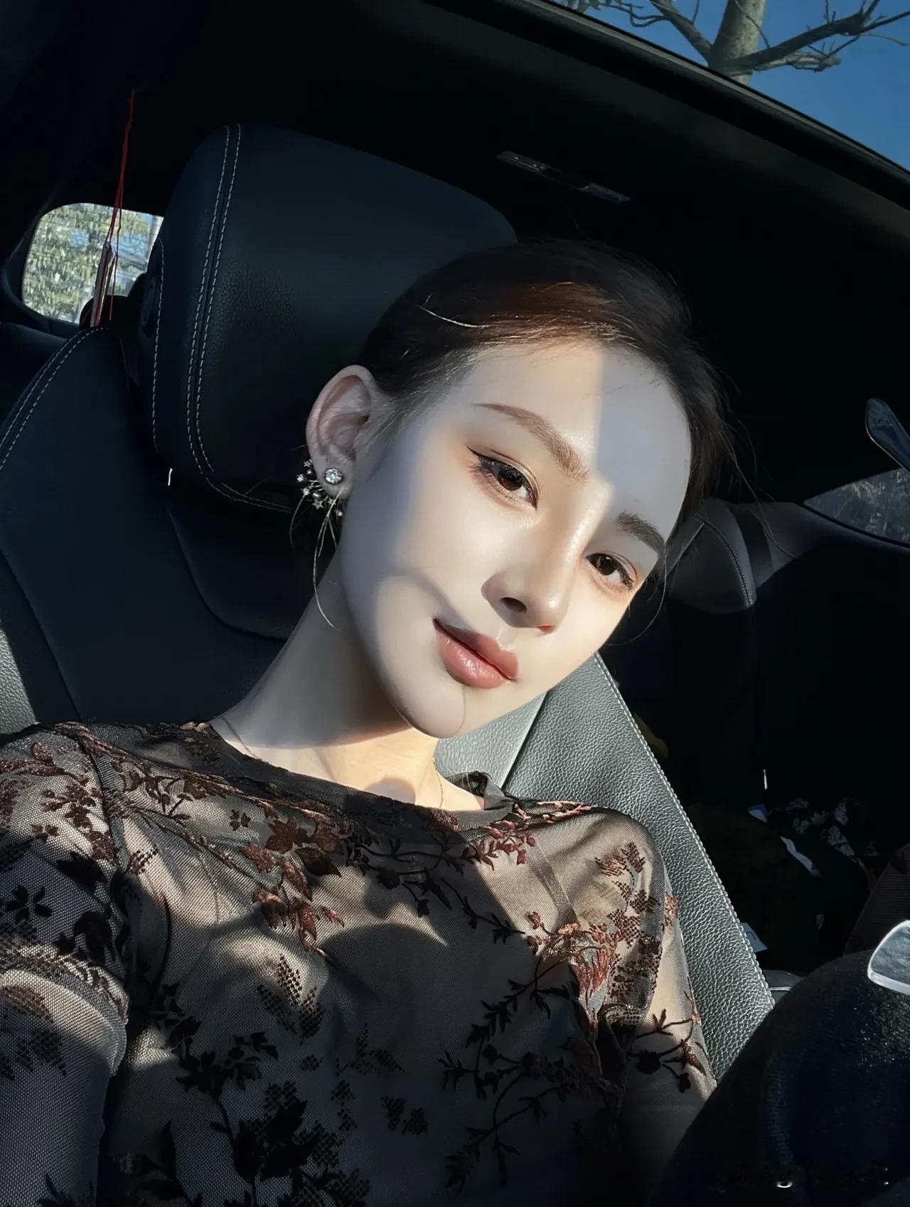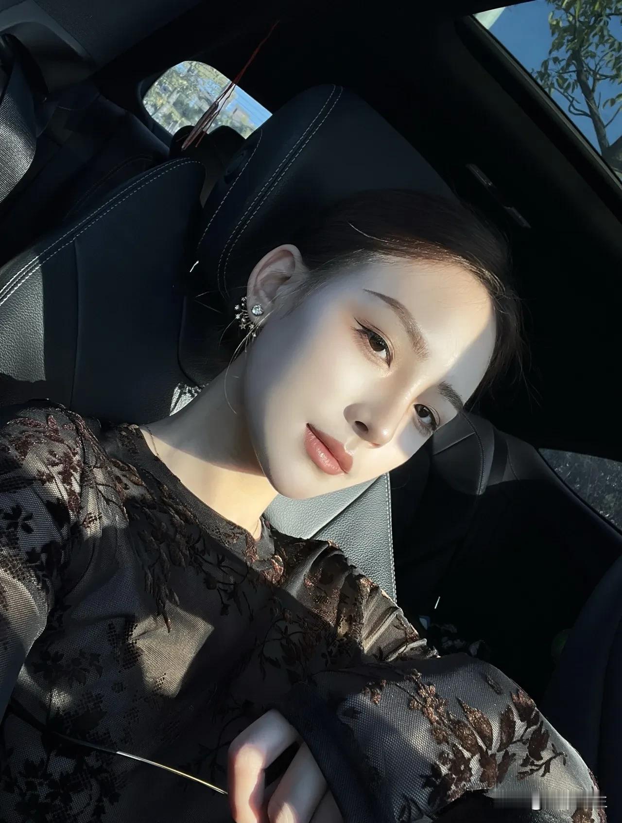 阳光洒进车内, 少女甜美自拍💖