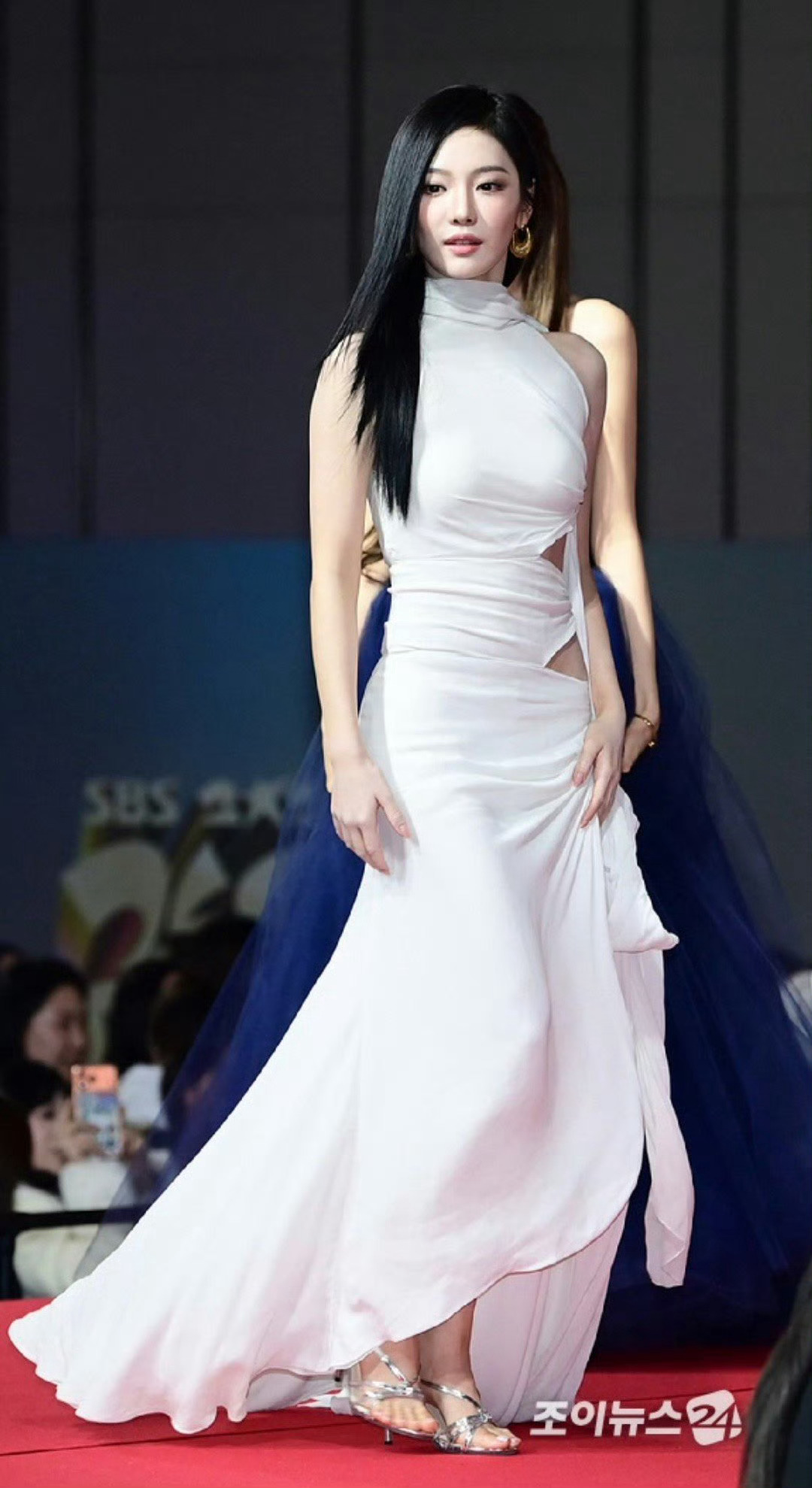 宁艺卓 x 2025sbs歌谣大战 造型,身穿ALAÏA 2025 秋冬系列白色露腰裙装亮相💐⭐️好亮眼的NINGNING,时髦性感,造型好美啊!SBS红毯宁艺卓露腰礼服
