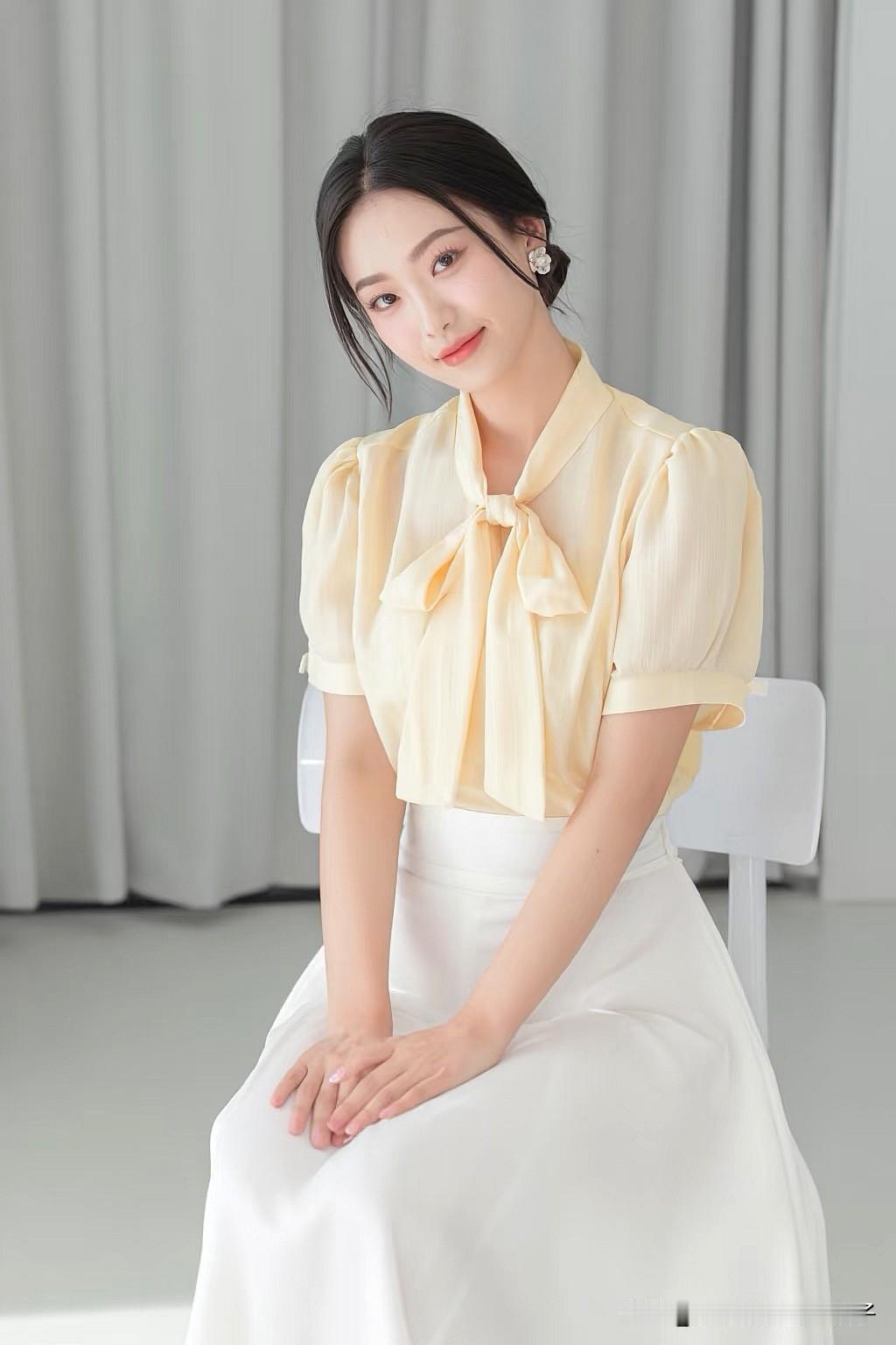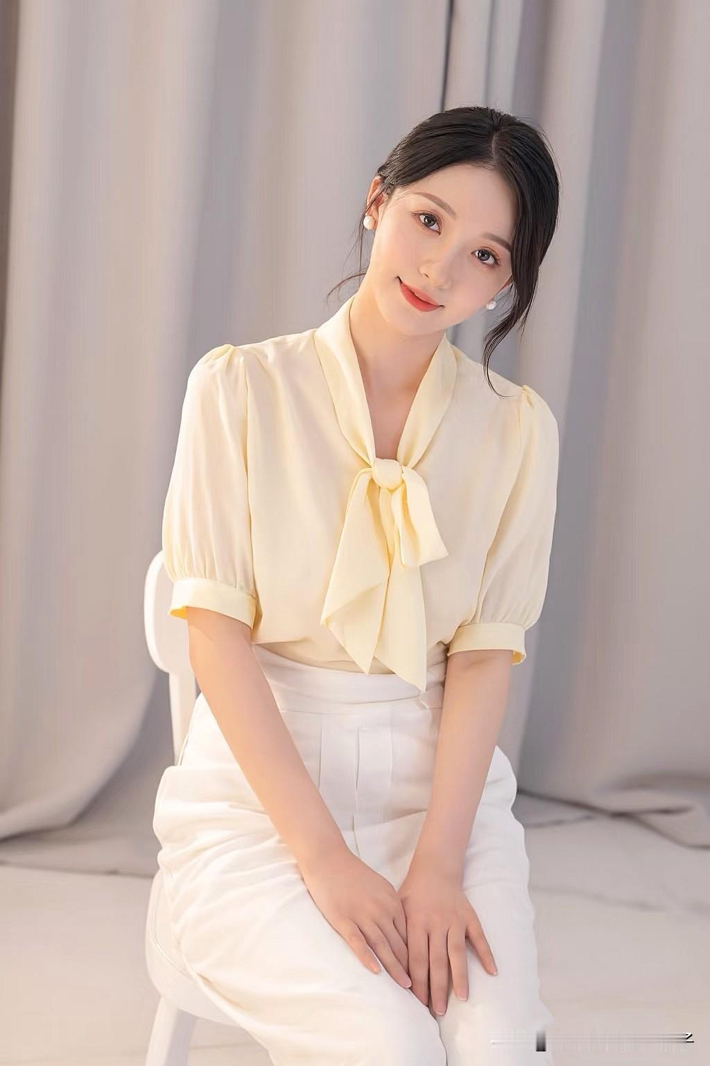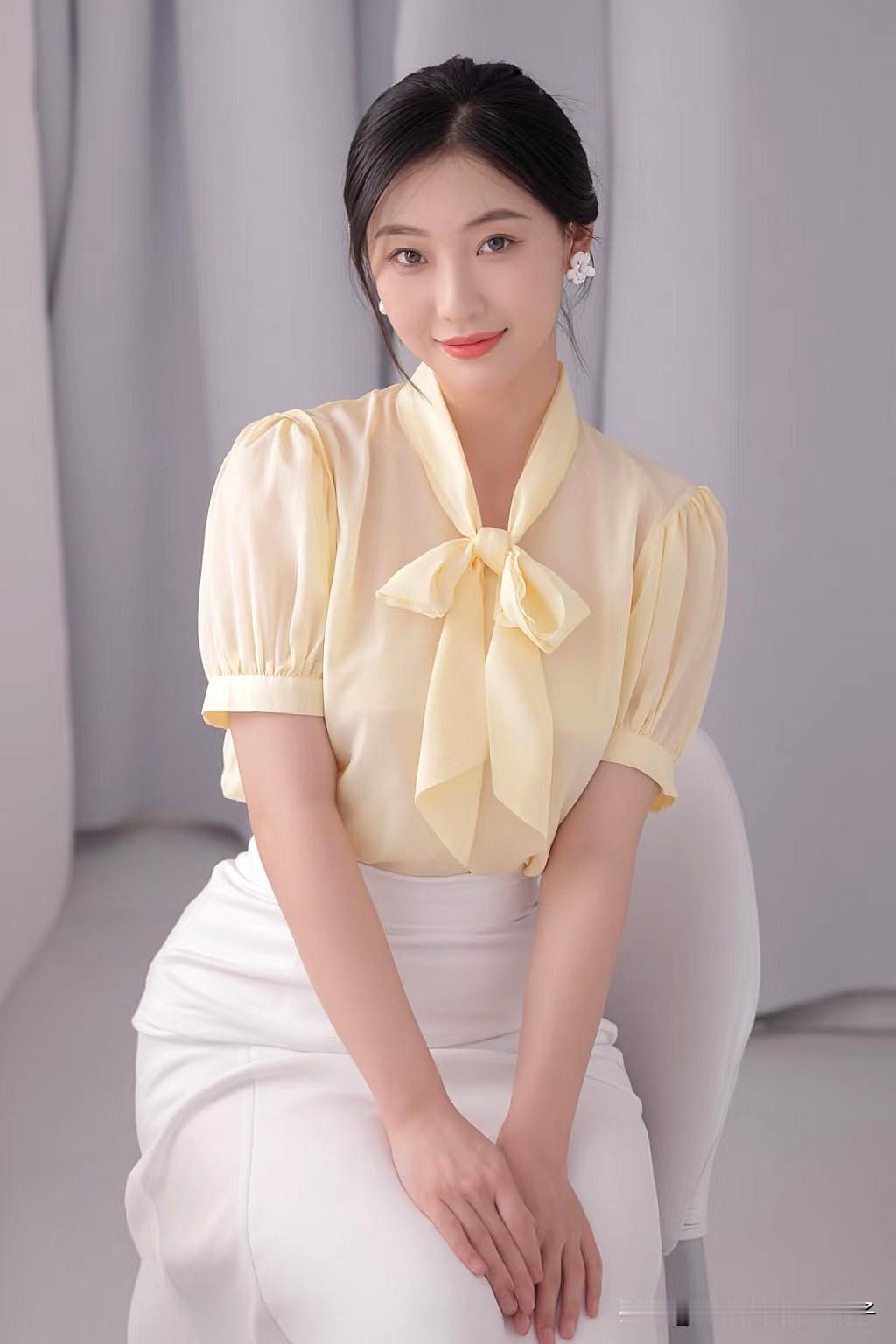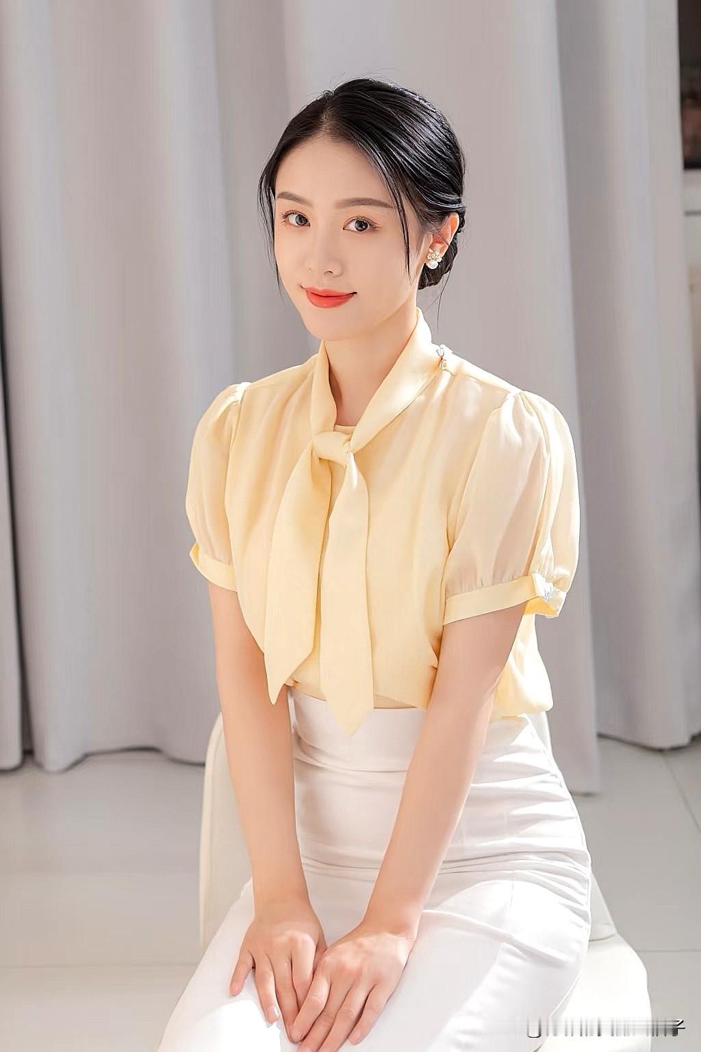 轻盈的浅黄色,搭配精致的蝴蝶结,这件法式设计感上衣为职场注入了一丝柔美。泡泡袖的设计增添了几分俏皮,而整体剪裁又不失干练。无论是搭配裙装还是裤装,都能轻松应对各种场合。温柔与力量并存,这就是理想的职业装吧!🌸🎀