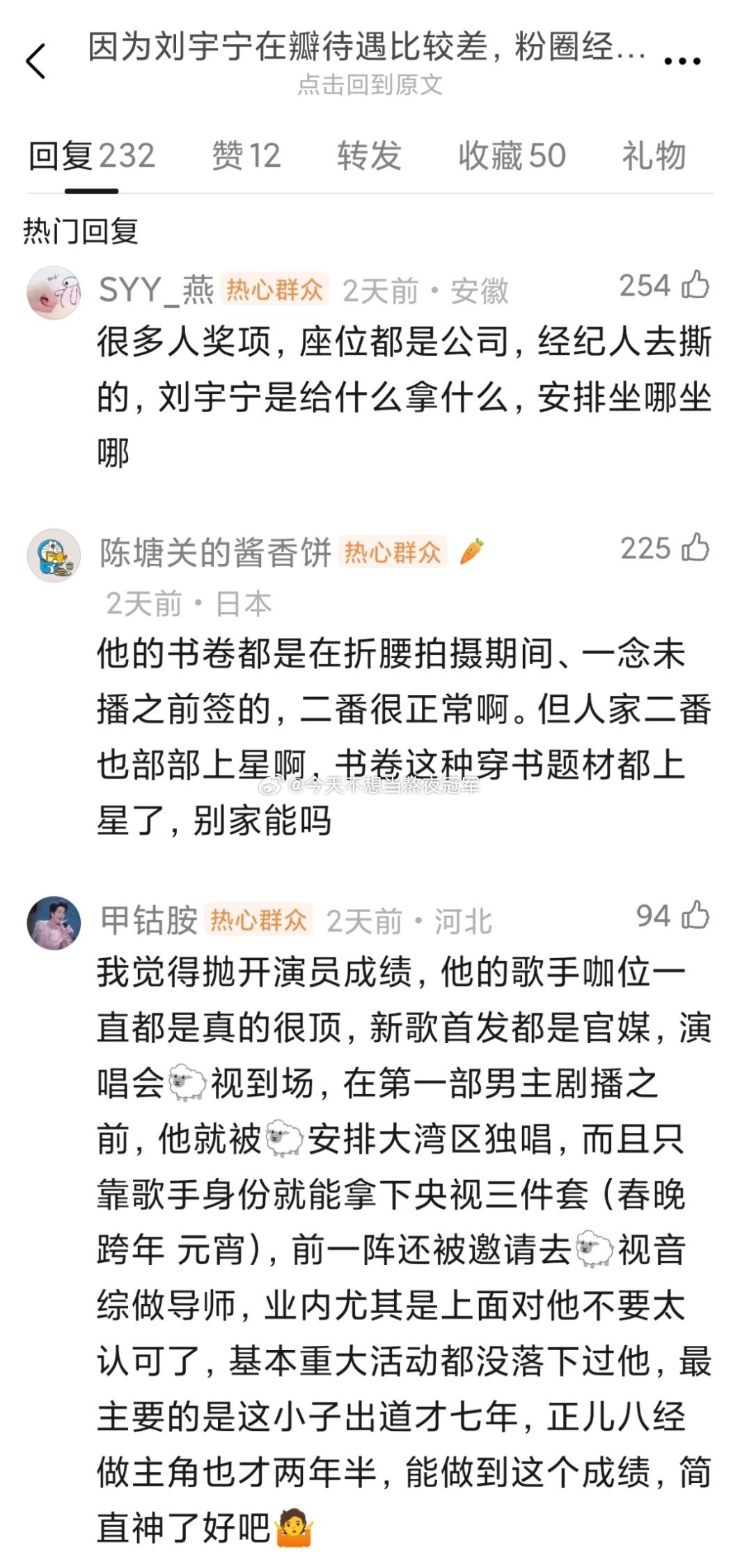 李涛,演员番位能代表实际咖位吗?网友说刘宇宁总是给年轻花当古偶二番。 但是参加晚会和活动,主办方给的待遇和座位又都还可以。所以顶刘咖位是被低估了吗?刘宇宁没带串儿就盘自己星光大赏刘宇宁神图
