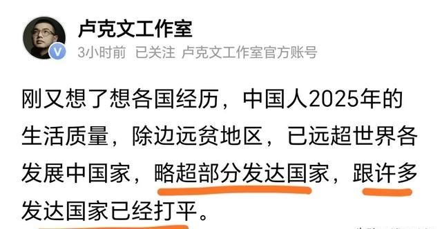 中国人均GDP依然低于全球平均水平!但是,中国人均住房面积40平方米,超过大部分发达国家;中国人均粮食消耗量远超世界平均水平,和中等发达国家相当;中国家用电器普及率、手机普及率都和中等发达国家相当。 很多人一提起中国人均GDP,就觉得日子过得一般般。2025年数据出来,中国人均GDP大概在1.3万到1.38万美元左右,全球平均水平接近1.39万美元,中国还是稍微低一点,排在全球70位上下。这数字确实不算高,尤其跟欧美那些人均好几万的比,差距摆在那儿。 但生活质量这事儿,光看人均GDP可不准。老百姓实打实过日子,得看吃住用这些方面。中国现在人均住房面积40平方米出头,国家统计局和央行数据都显示城镇居民超过40平方米,整体包括农村更高。这个数字用建筑面积算的,发达国家多用套内面积,扣掉公摊后中国实际使用面积在30多平方米,但整体水平已经超过不少欧洲国家,像法国英国都在36-37平方米左右,日本韩国更低,德国美国高一些在46-60平方米。中国住房从过去挤小屋到如今宽敞楼房,很多家庭客厅厨房齐全,这进步实实在在。 粮食消费这边,中国人吃得可不少。以18%人口,粮食总消费占全球近三成,人均占有量500公斤左右,远超国际400公斤安全线。餐桌上米面肉蛋菜果样样有,肉类摄入接近中等发达国家水平,蔬菜水果消费全球一半以上。很多人家每周买新鲜食材,膳食从填饱转向营养丰富,这跟单纯看经济数字完全不一样。 家用电器和手机普及也亮眼。空调冰箱洗衣机几乎家家有,普及率高得很,手机每百人持有超过120部,智能设备用得跟中等收入较高国家差不多。电力稳定,产品价格实惠,普通人轻松买到高质量东西。汽车保有量也上来了,很多家庭有车出行。 这些加起来,中国老百姓拿着中等偏上收入,过着在住房粮食家电上不输给很多发达国家的日子。这得益于工业体系全,东西造得出来卖得便宜,基础设施稳,供电路网高铁都跟上。以后随着收入继续涨,这些方面只会更好,日子越来越踏实。