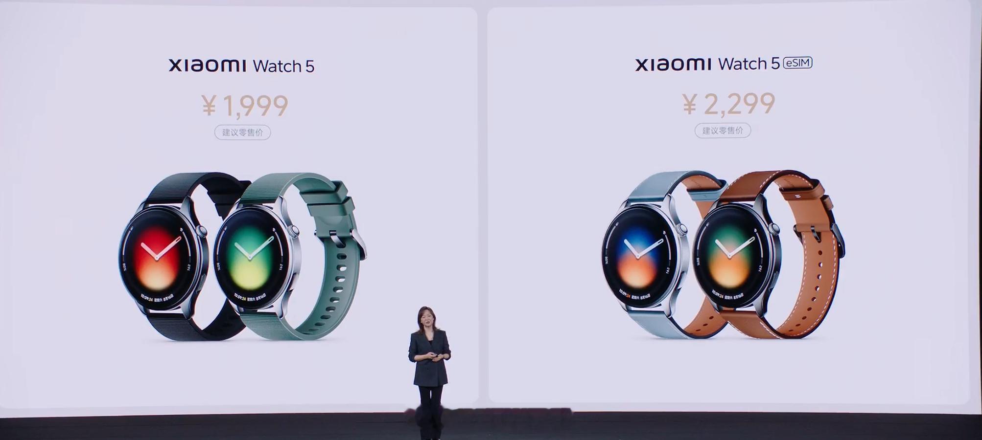 小米 Watch 5 蓝牙版售价 1999 元,eSIM 版 2299 元,双面蓝宝石玻璃,独立应用商店,高通骁龙 W5 芯片,EMG 肌电传感器,6 天续航,支持独立使用微信、支付宝。